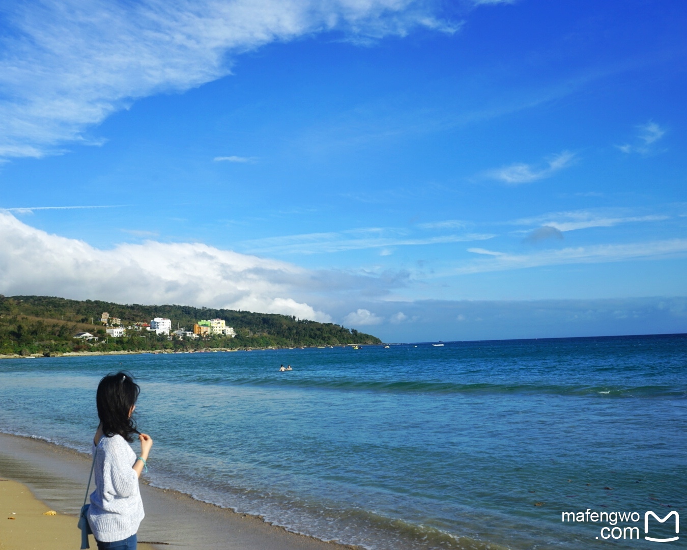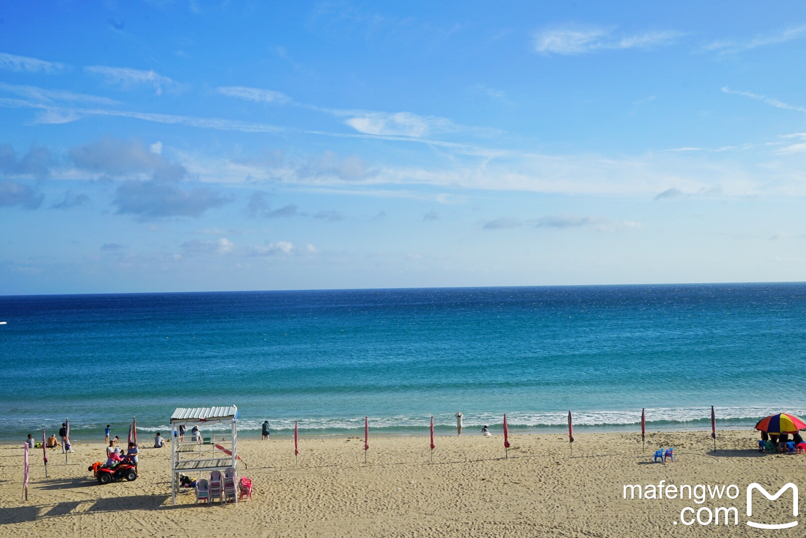 吃饱喝足开着小电车出发【南湾】,从恒春古镇出发大概15-20分钟,去的那天天气非常好,碧海蓝天,从靠近沙滩的是浅蓝慢慢由浅及里渐变过渡到深蓝,同一片海面呈现出三种颜色,和远处的青山白房组成一道不用滤镜的风景图。