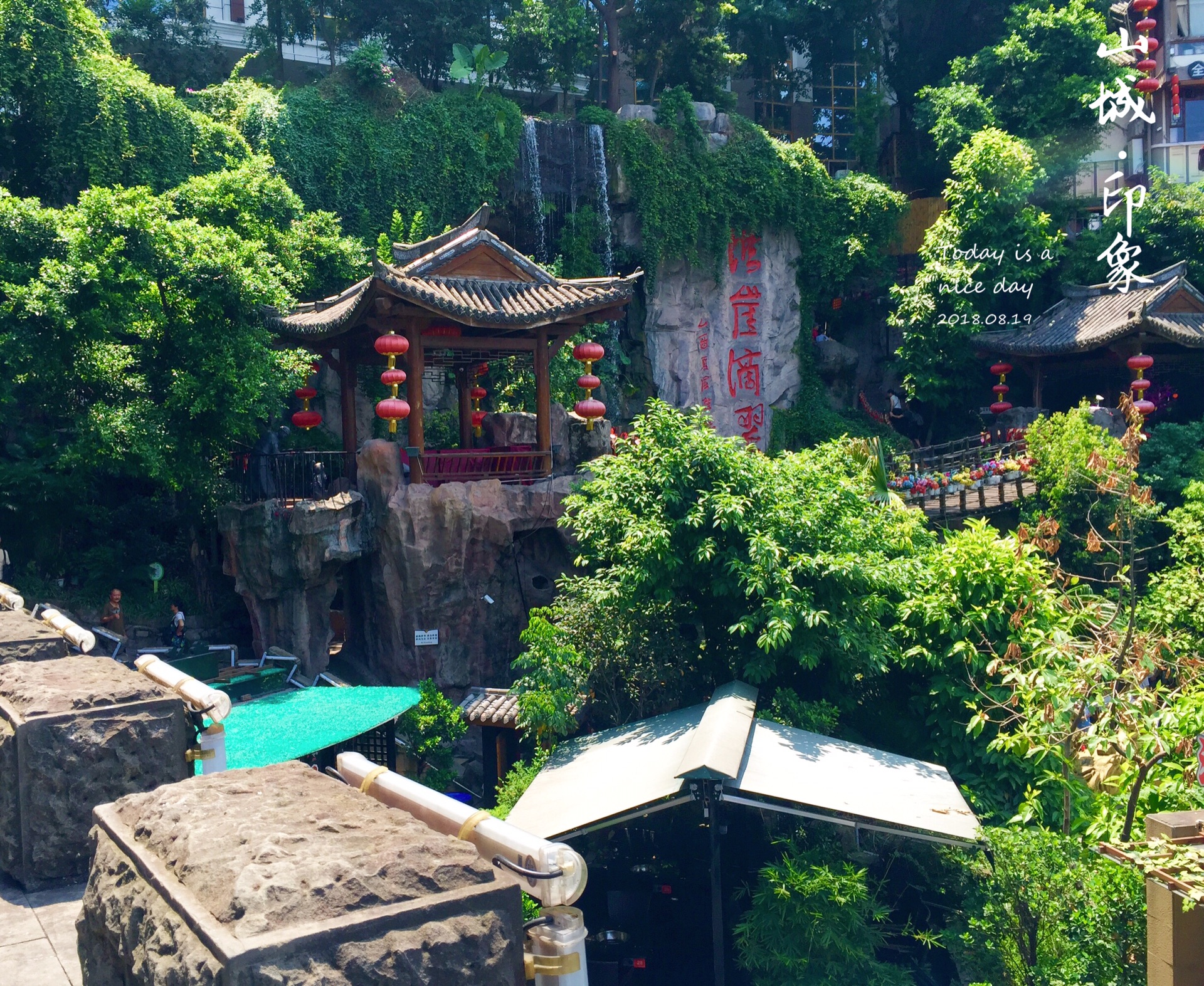 在洪崖洞西侧,隐藏着一处山水景观--洪崖滴翠,古巴渝十二景之一,早在唐宋时期就有了名气。