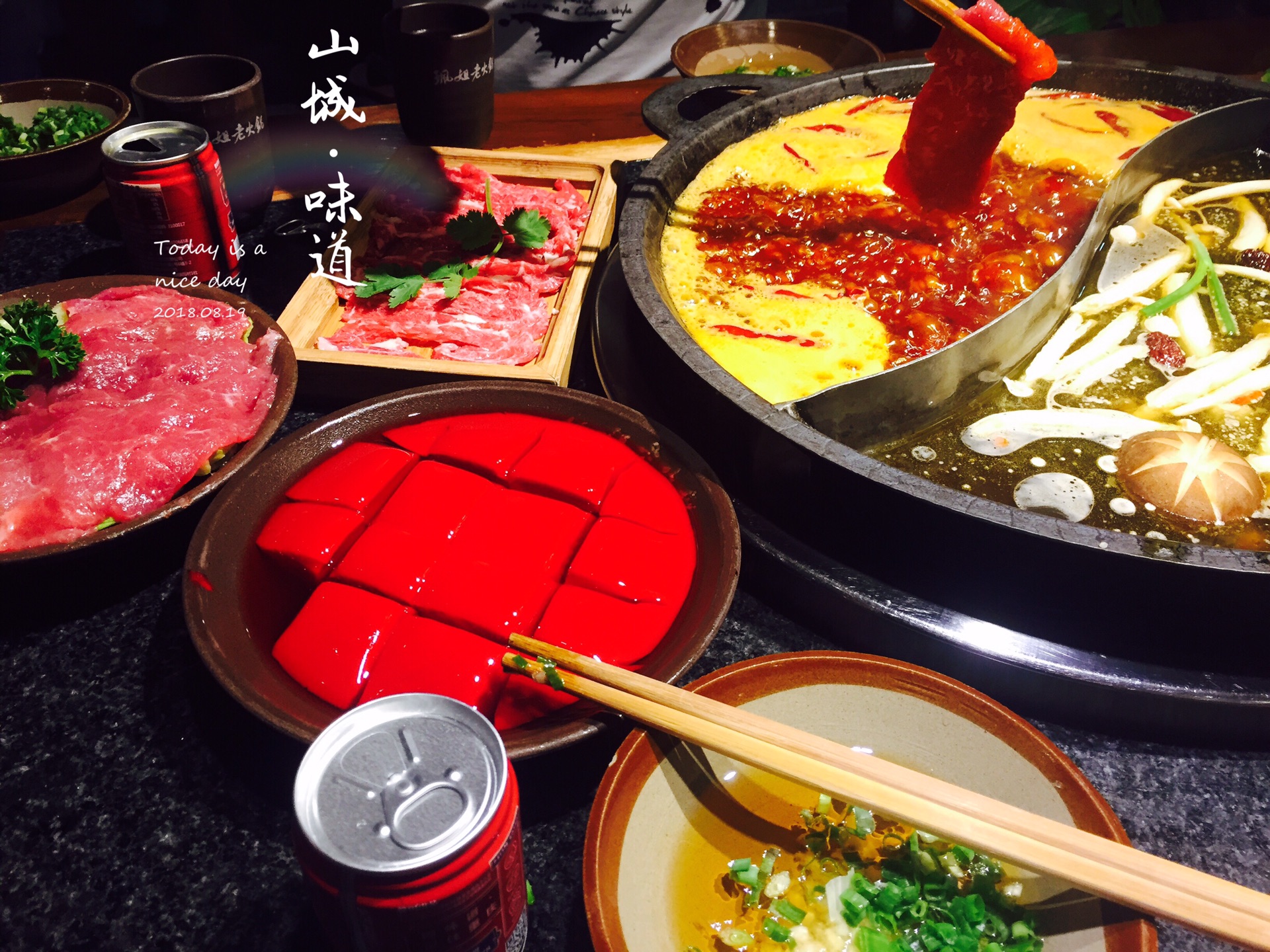 ,感觉那才是重庆火锅的正确打开方式,还是鸳鸯锅更适合我们的团队。如果不能吃辣,“微微辣”的锅底也不要挑战,据说也是相当的辣