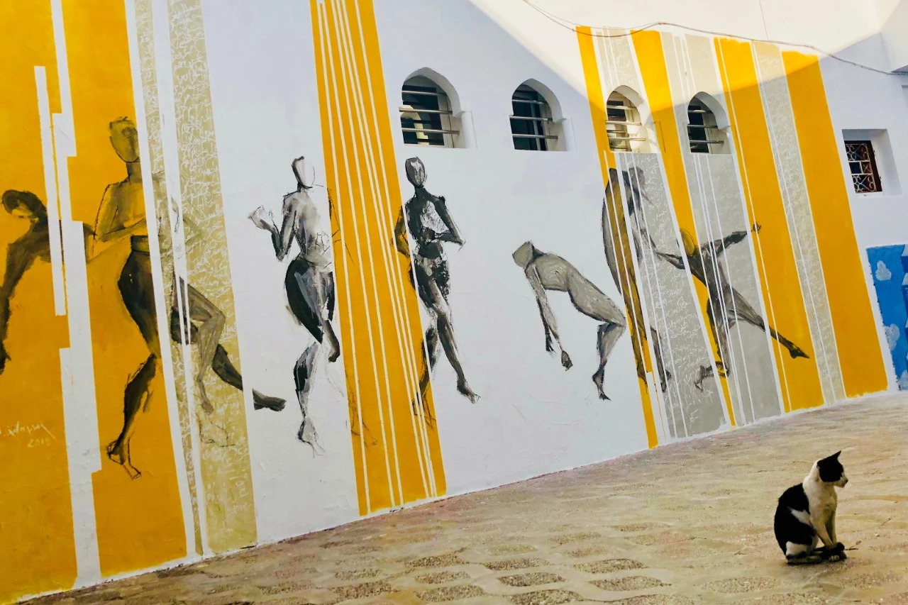 穿过布置着艺术展品的长廊 就抵达了我们订的民宿(Asilah Dar el Maq)