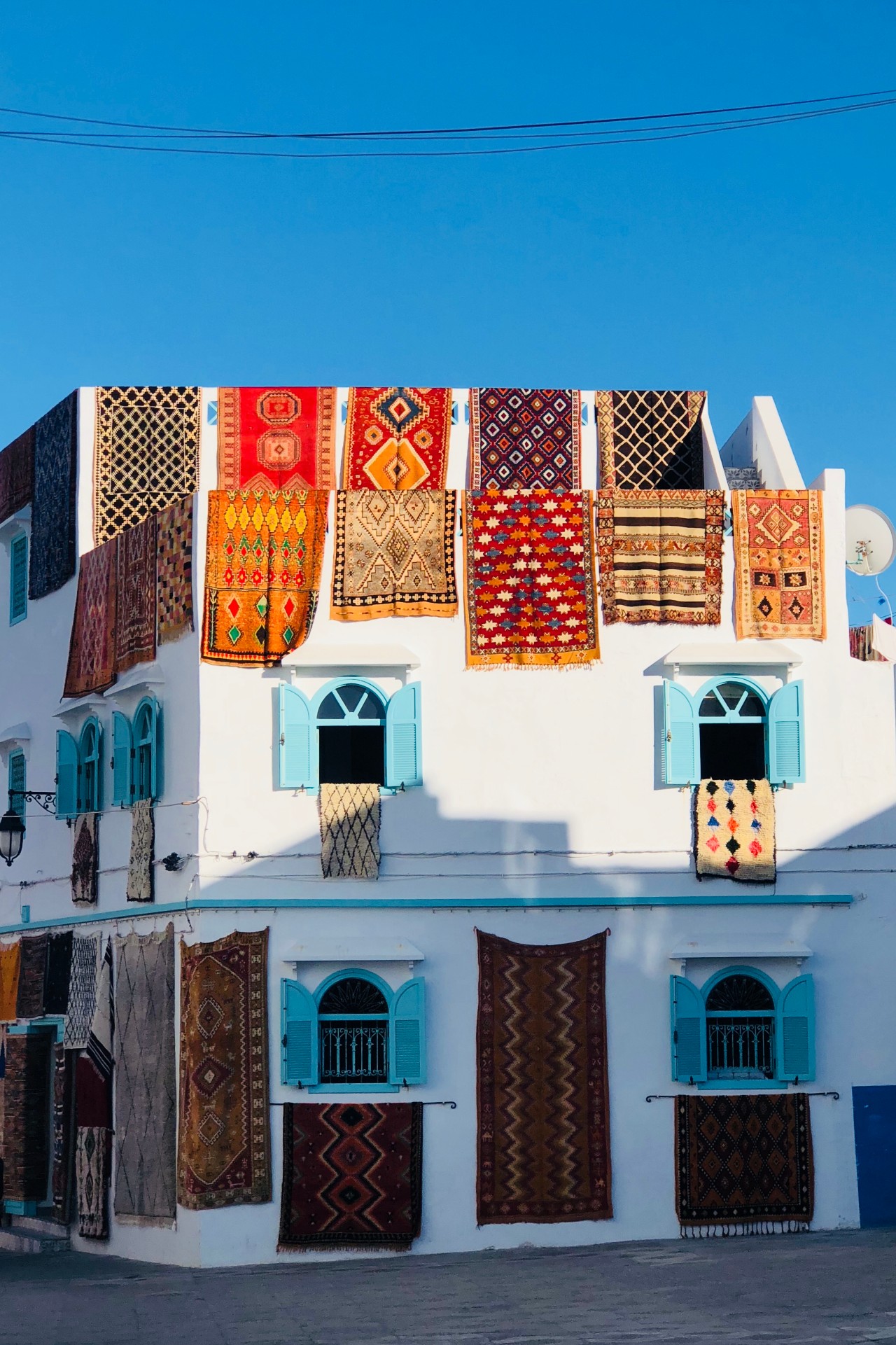 楼顶窗口晒的毯子在阳光下也觉得很有艺术感