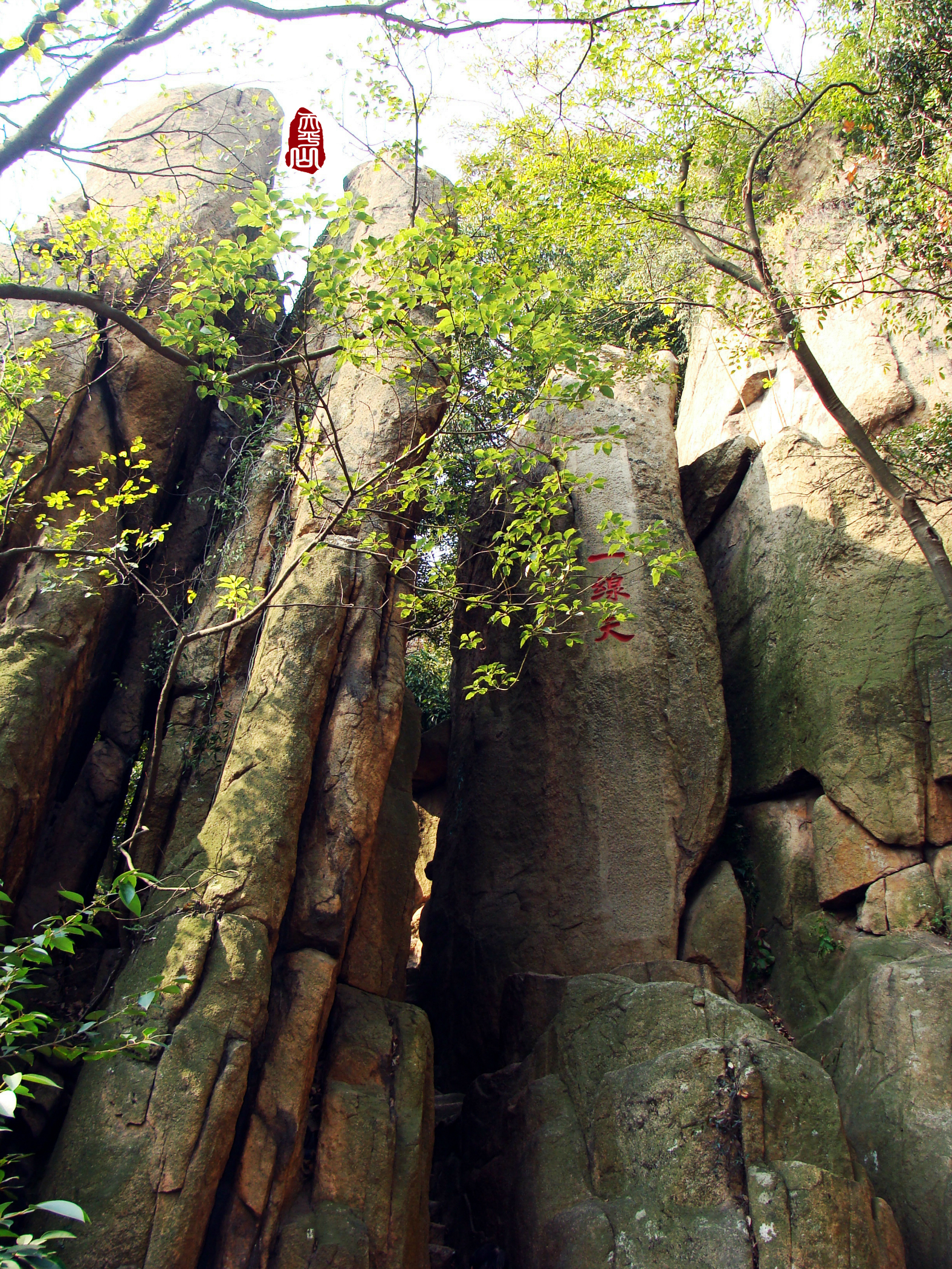 山势峭峻,花岗岩森然耸立如万笏朝天,201米高的山竟然需要手腳並用才能上的山頂。不過,工作人員在長而無聊的地段修好了台階,又很湊趣地在一些還算有點難度的坡段留下了登攀的小路。這樣登山,勞逸結合,享受了爬山的樂趣,也不至於累到大腿抽筋。最絕妙的是,往往在你上氣不接下氣,感覺快要斷氣的時候,咬牙一堅持,發現已經來到了山頂。