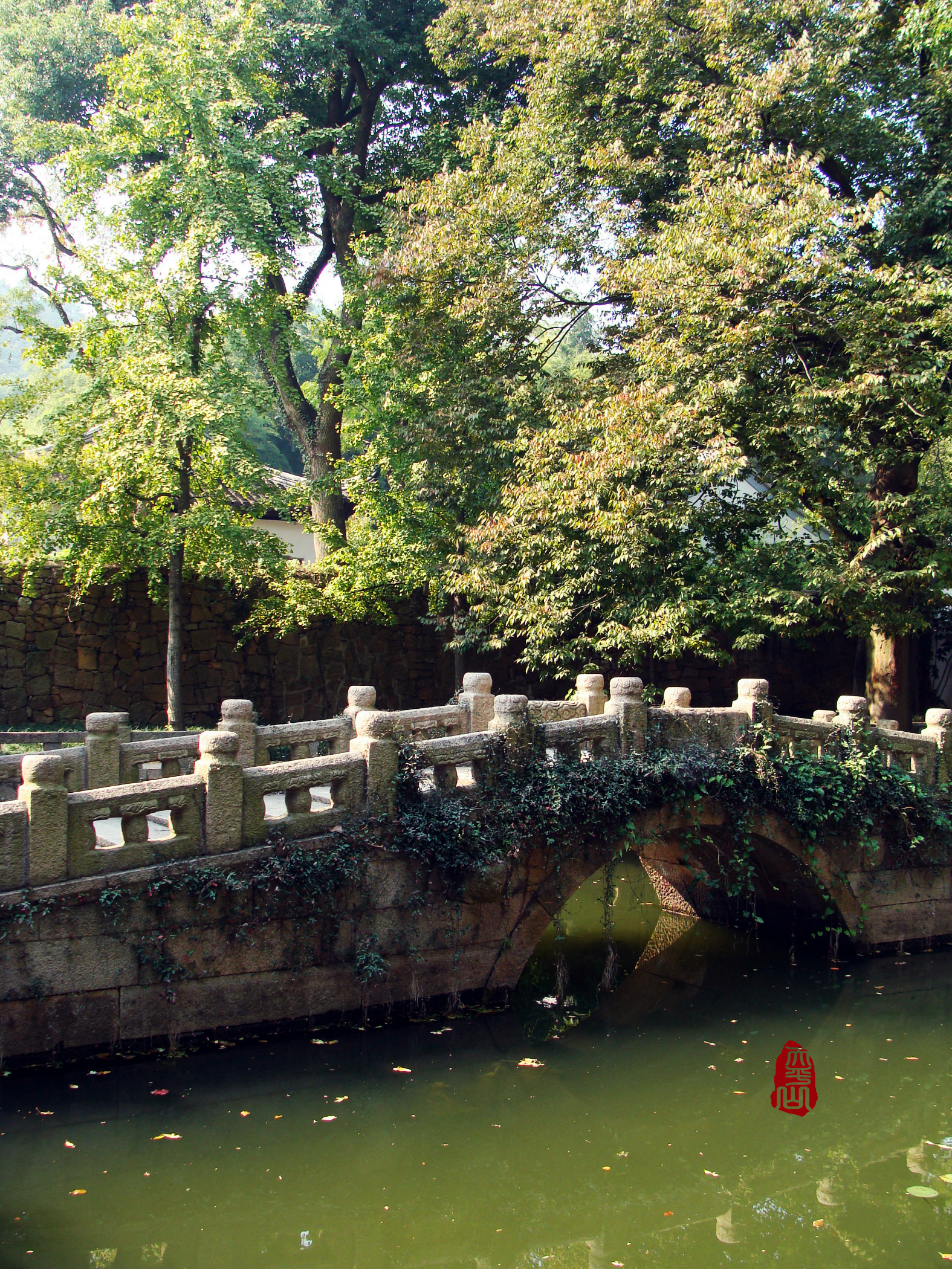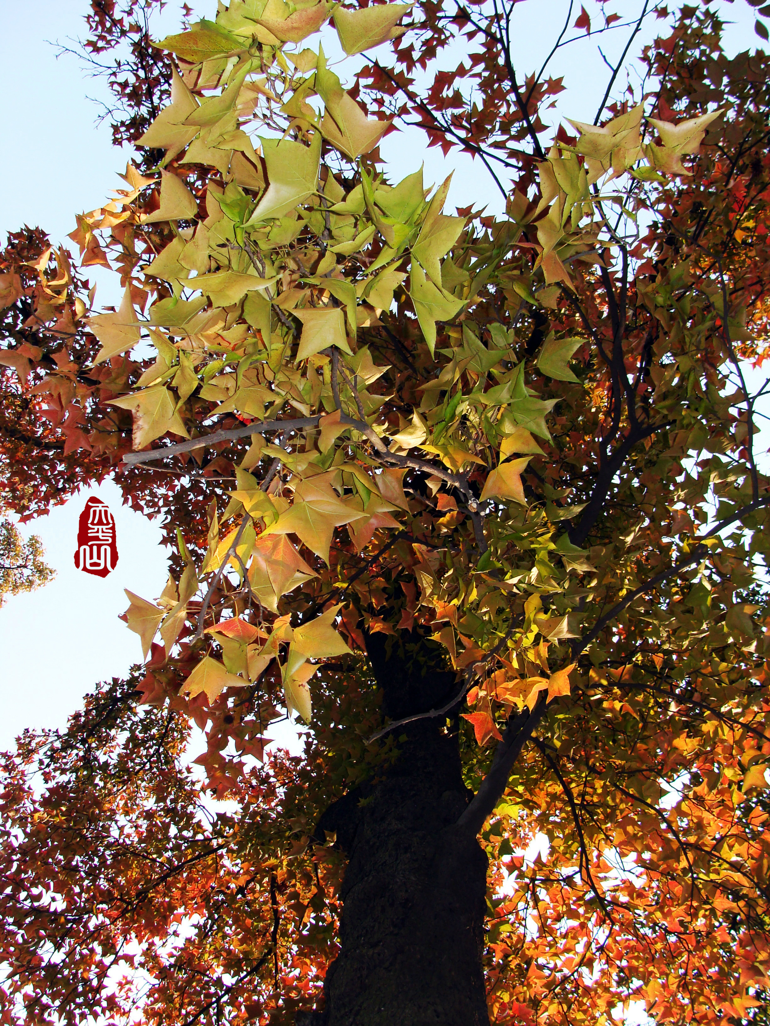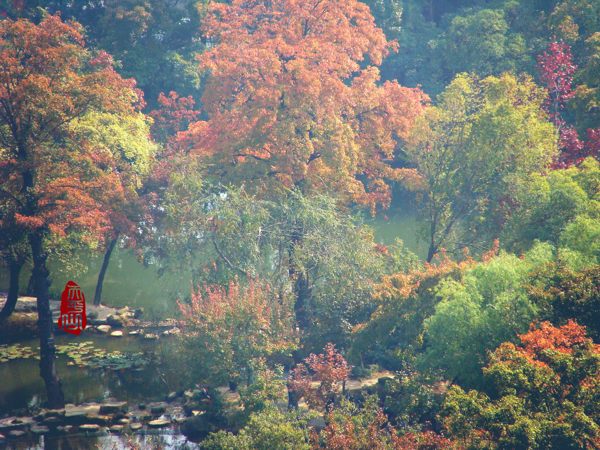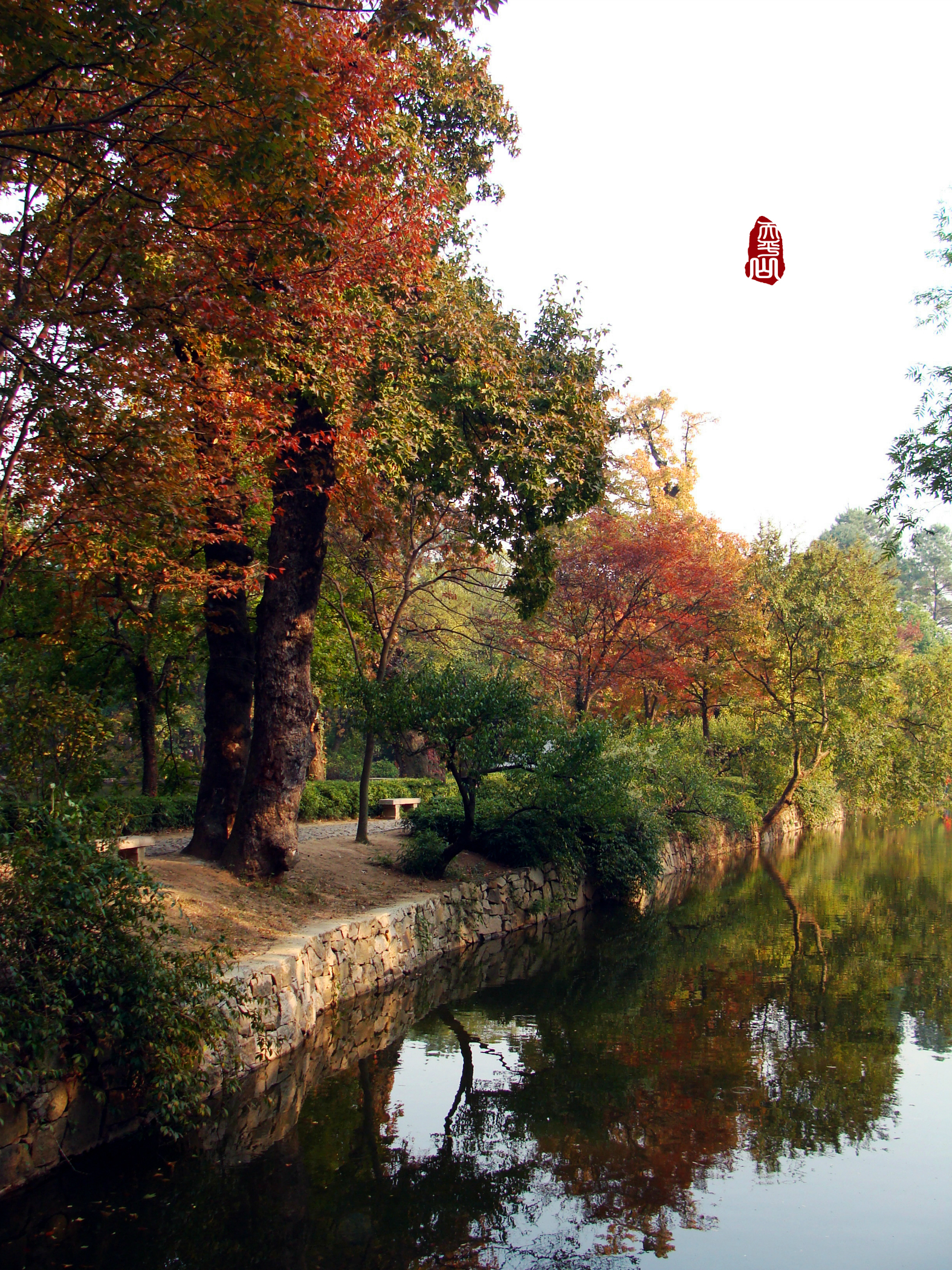 天平山以楓葉勝。但楓葉也不是毫無來歷,山東南麓的古楓林,是明代萬曆年間范仲淹十七世孫範允臨從福建帶回,植於祖瑩之地,至今枝繁葉茂。