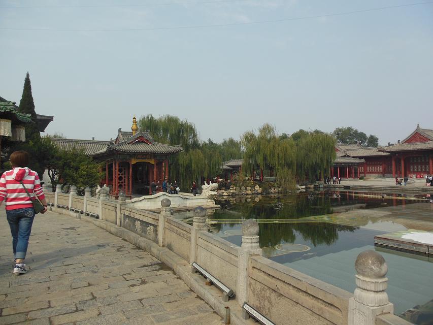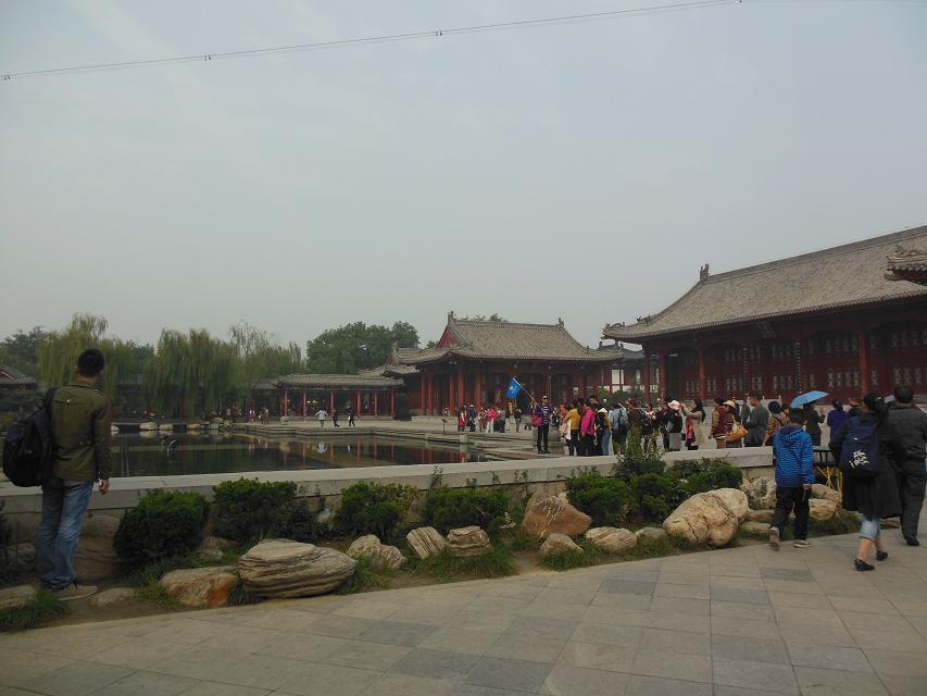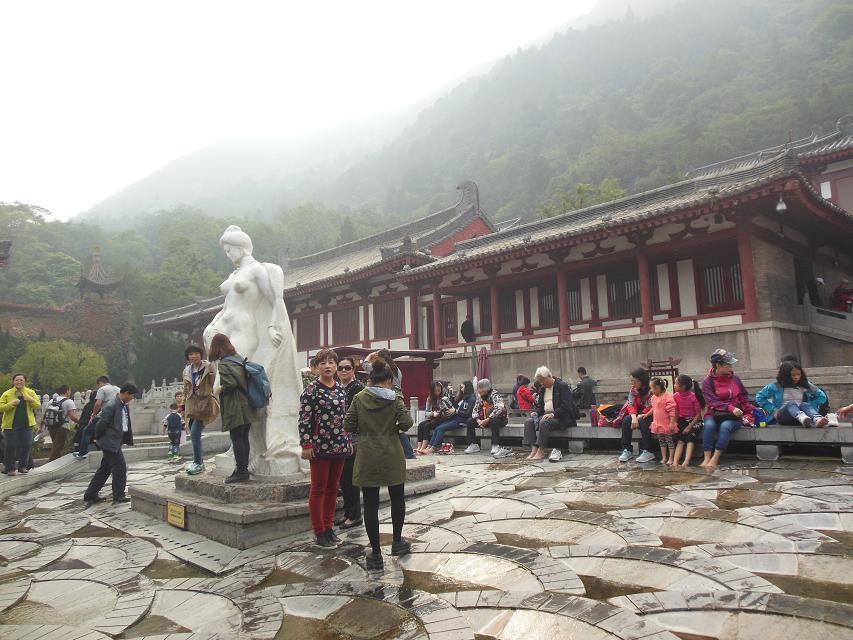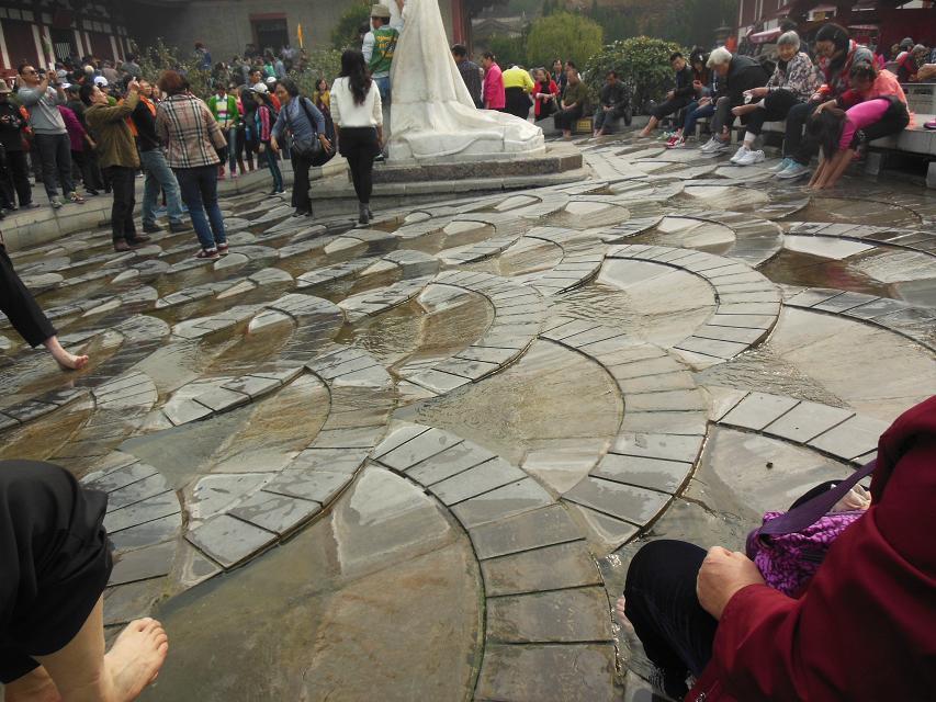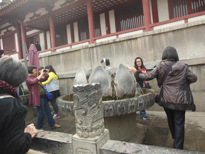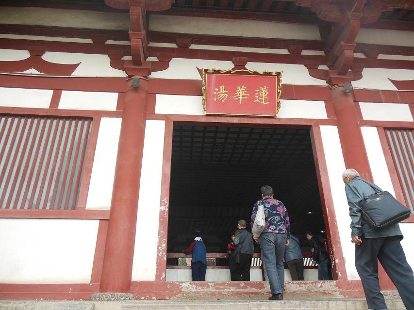 当年的唐明皇不仅带着杨贵妃还把一大批文武官员都带来洗浴了。皇上和贵妃在上游的浴室。大臣们按品级在下游的浴室。温泉的水往下流淌。大臣们感激皇上的恩典。磕头谢主——皇恩浩荡。