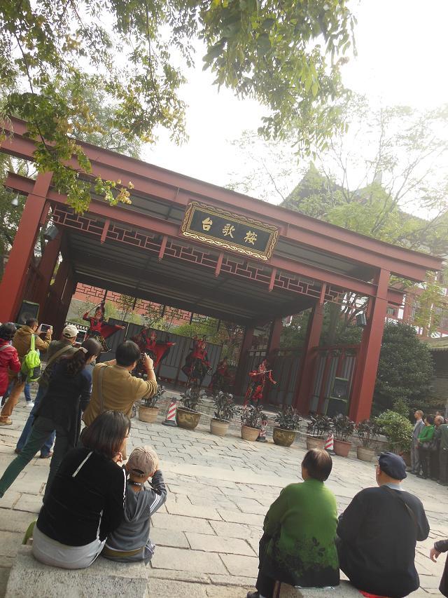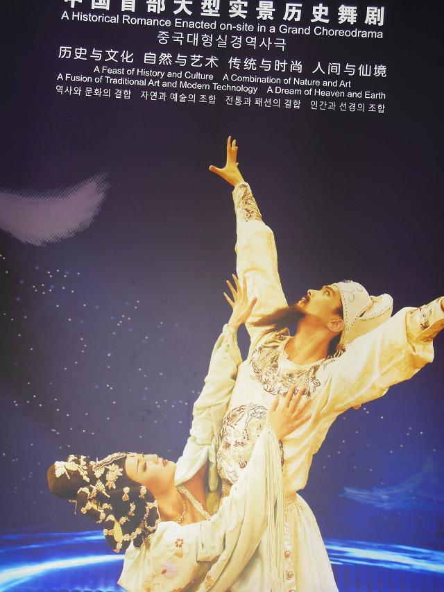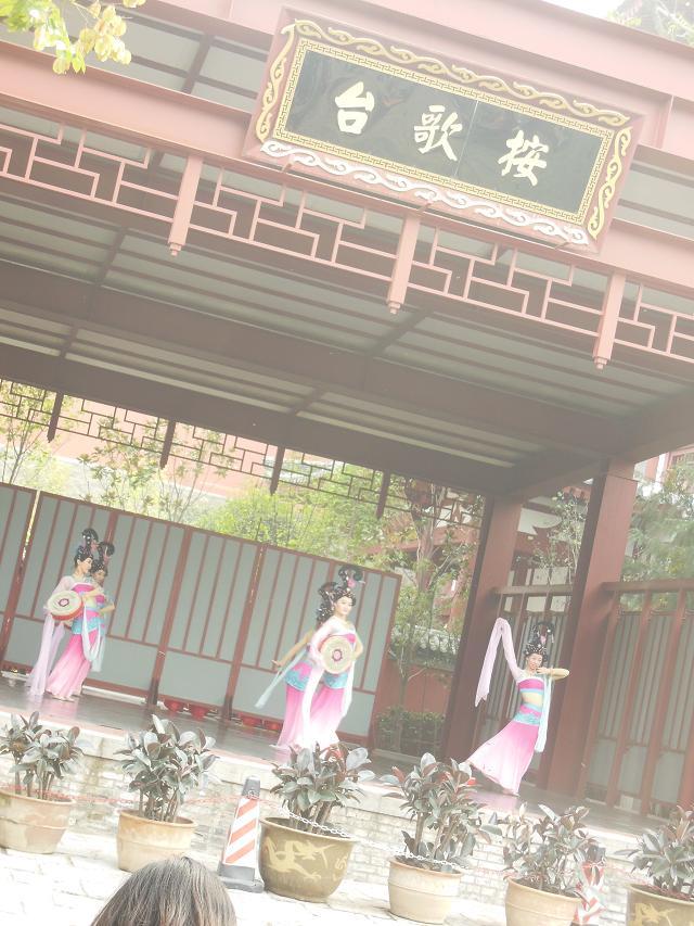 按歌台表演唐代的宫廷舞。男性舞者表演的“胡旋舞”难得一见。貌似当年安禄山献演给唐明皇杨贵妃的。(如果我没有记错。)虽然演员的体形像豆芽菜,没有安禄山的粗犷雄壮。但动作刚强有力尽显雄性气魄。