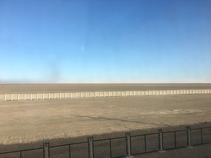 在火车上一觉醒来就看见了茫茫的戈壁滩,真的是寸草不生(手机信号几乎没有)