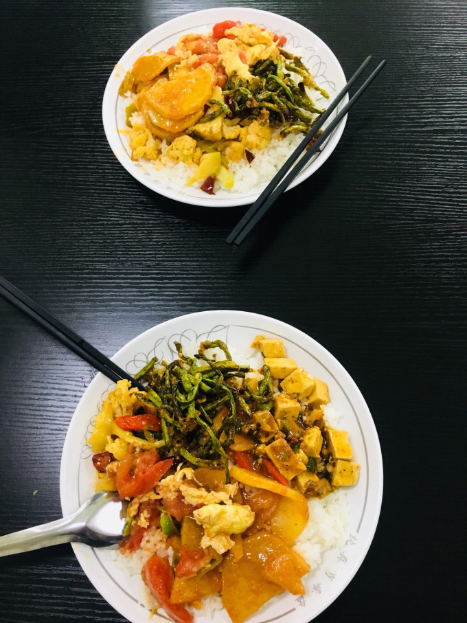 她请我来吃食堂,一个清真食堂,一个中餐厅,(中餐厅几乎没人,她说很难吃的