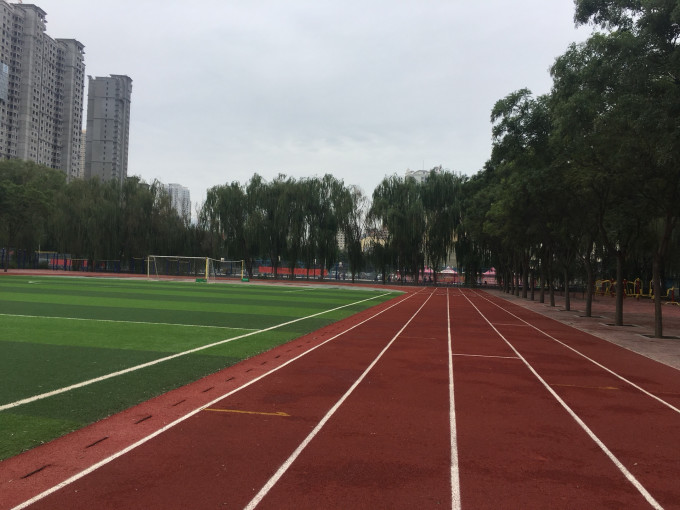在操场上就能看到隔壁学院的男生在他们自己的篮球场打篮球