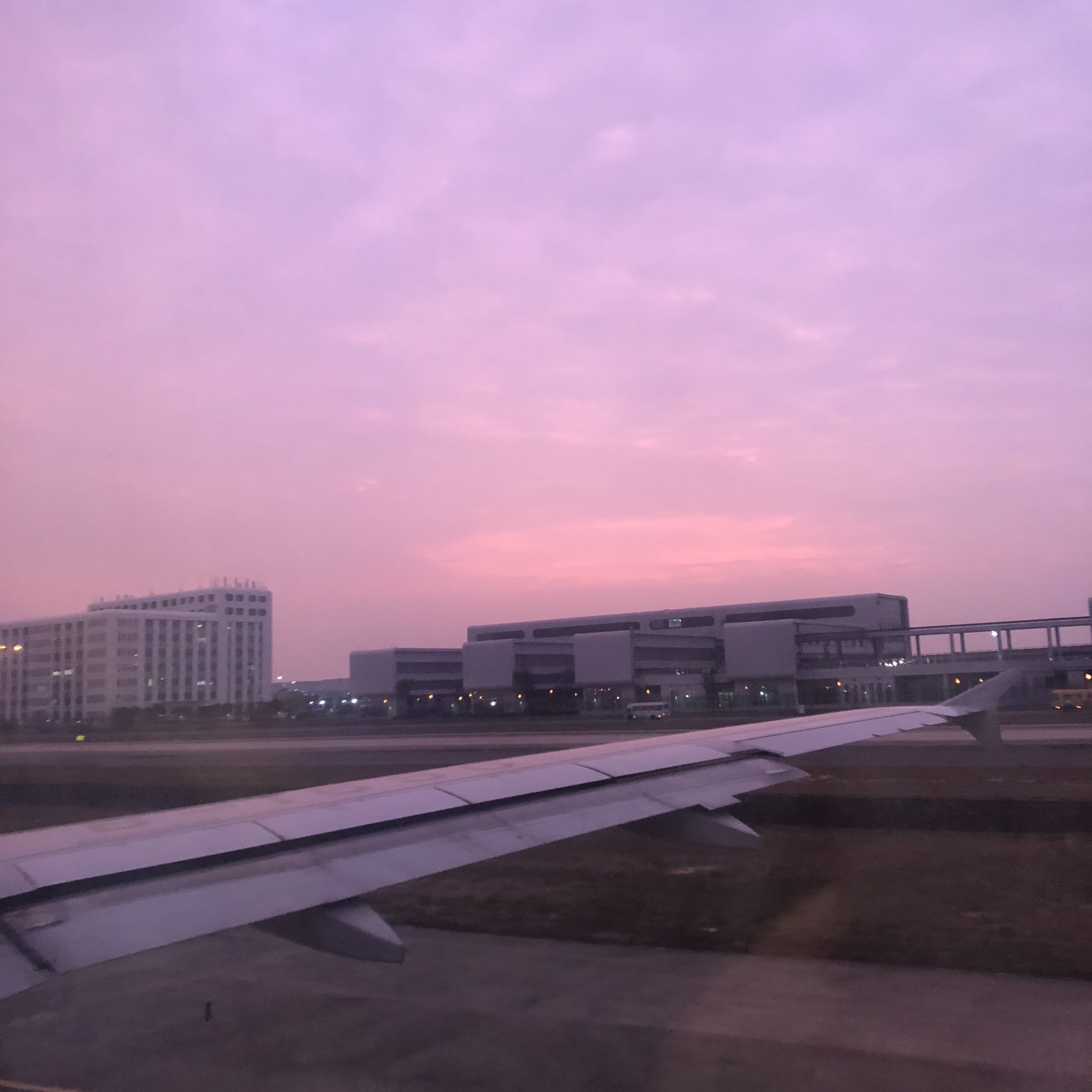从机舱向外看,粉红色的天儿简直少女心炸裂!起飞时天几乎黑了,从夜景来看,感觉深圳应该也是蛮繁华的呀!飞机上升的时候机舱的灯都是关着的,于是就在空中看到了落日~~超~美!!还有就是!!现在坐飞机都不用关机啦!!虽然没网~但还是能用的呀!!遥想去年暑假去成都…玩儿手机都得偷偷摸摸的…跟上课怕被老师抓着似的…
