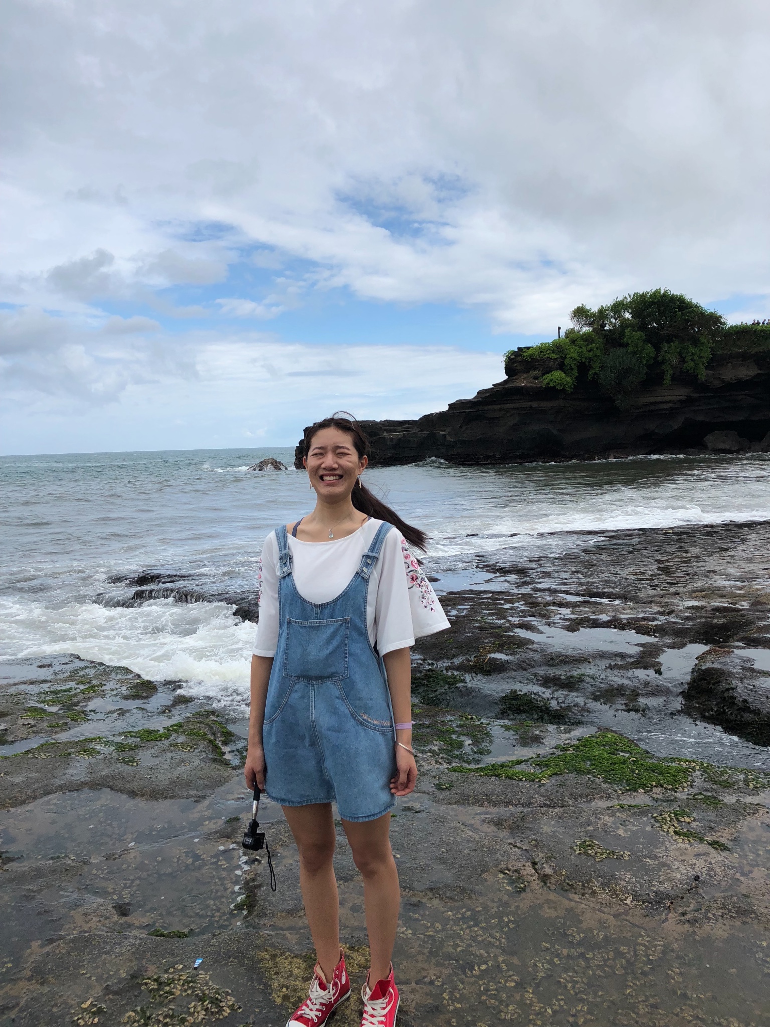 吃完早饭司机就来接我们啦~(早饭也好好吃啊啊啊啊!!!!!)胖胖的司机大叔带我们去了海神庙(深深体会到了印尼式英语的厉害哈哈哈)~小zhi发现海神庙其实就是一座小庙~而且还不让进~但重要是的他的选址~因为这儿真的好漂亮啊啊啊~~后来在海边的时候起了浪~铛铛虽然离海边儿还挺远的~但只一下!她的鞋!就!全!湿!了!哈哈哈哈哈哈哈哈哈~下图是她下一瞬间的反应哈哈哈哈哈哈太可爱了!!!