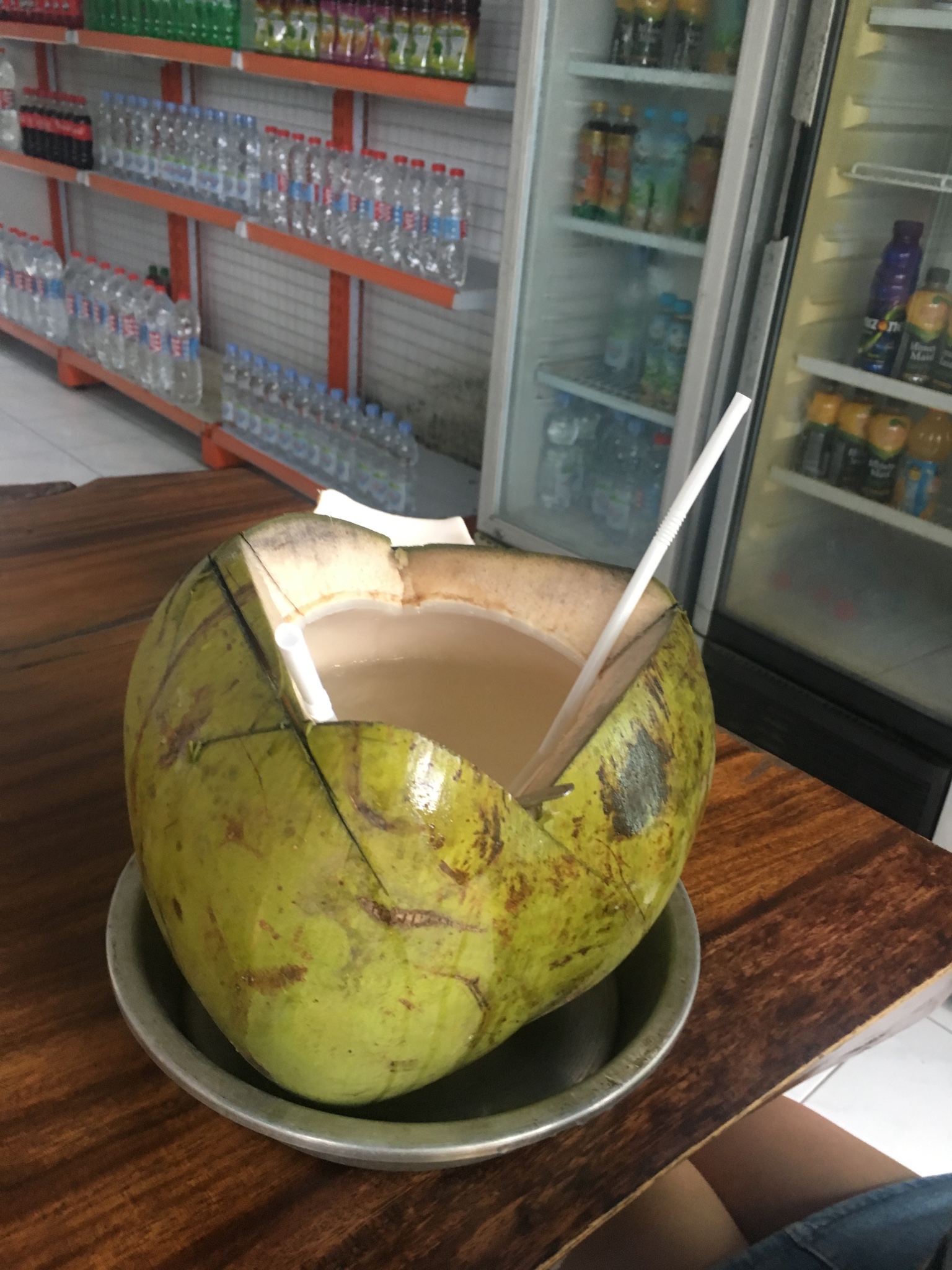 因为渴了就买了椰子喝~是按个儿卖的~店主小姐姐真的是给我们挑了最最最最最大个儿的!!还拿了勺子给我们吃椰肉~耶!但是它的个儿实在太大了!!用了洪荒之力我们也木有喝完…