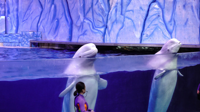 鲸鲨馆,南极馆还是挺有意思的~尤其是见到超大的鲸鱼很震撼,见到很多很美的水母也很棒~还看了超棒的白鲸表演,我司一位美女还被选中做幸运观众和白鲸近距离接触