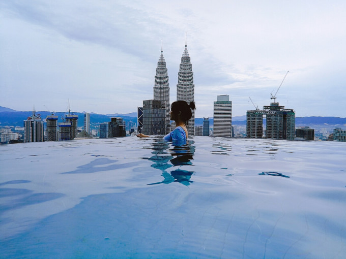 ▲「吉隆坡」——陪我在网红酒店顶楼泳池打卡装13,即便她刚换的干爽衣服被躺椅弄湿