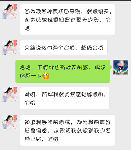 zz说:我们就像歌词里唱的,“我们一个像夏天一个像秋天,却总能把冬天变成了春天”