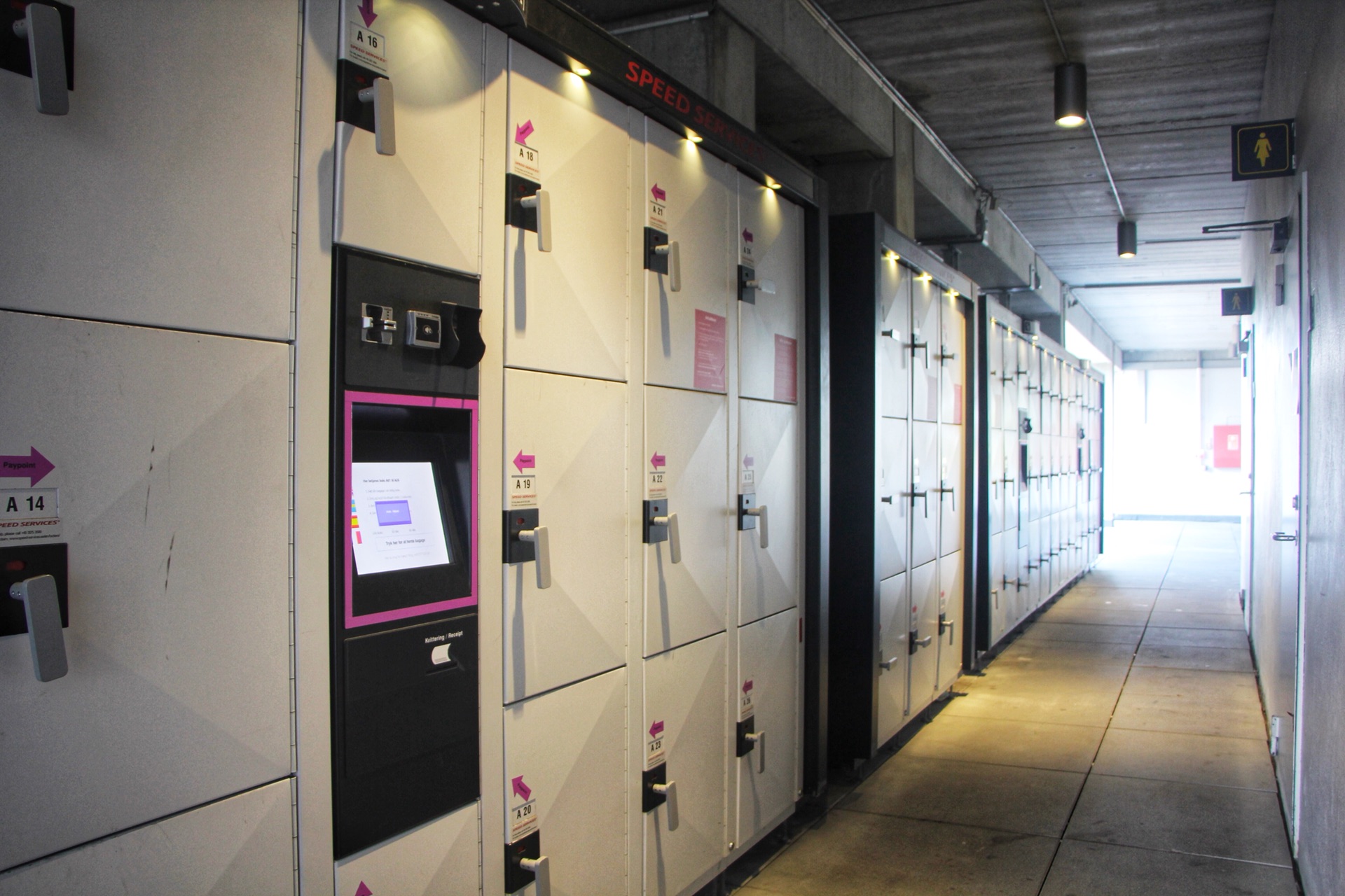 在哥本哈根机场有一个寄存行李的地方,我也是在网上听说过但是不知道具体是如何,到了机场以后一路问工作人员,首先这个寄存行李是selfservice,自助的,非人工,用visa或master,这里要提一下,检查一下你们手里的信用卡,最好是有芯片的,没有芯片的一般pos机没问题,但是遇到这种没有人管的机器就用不上了。