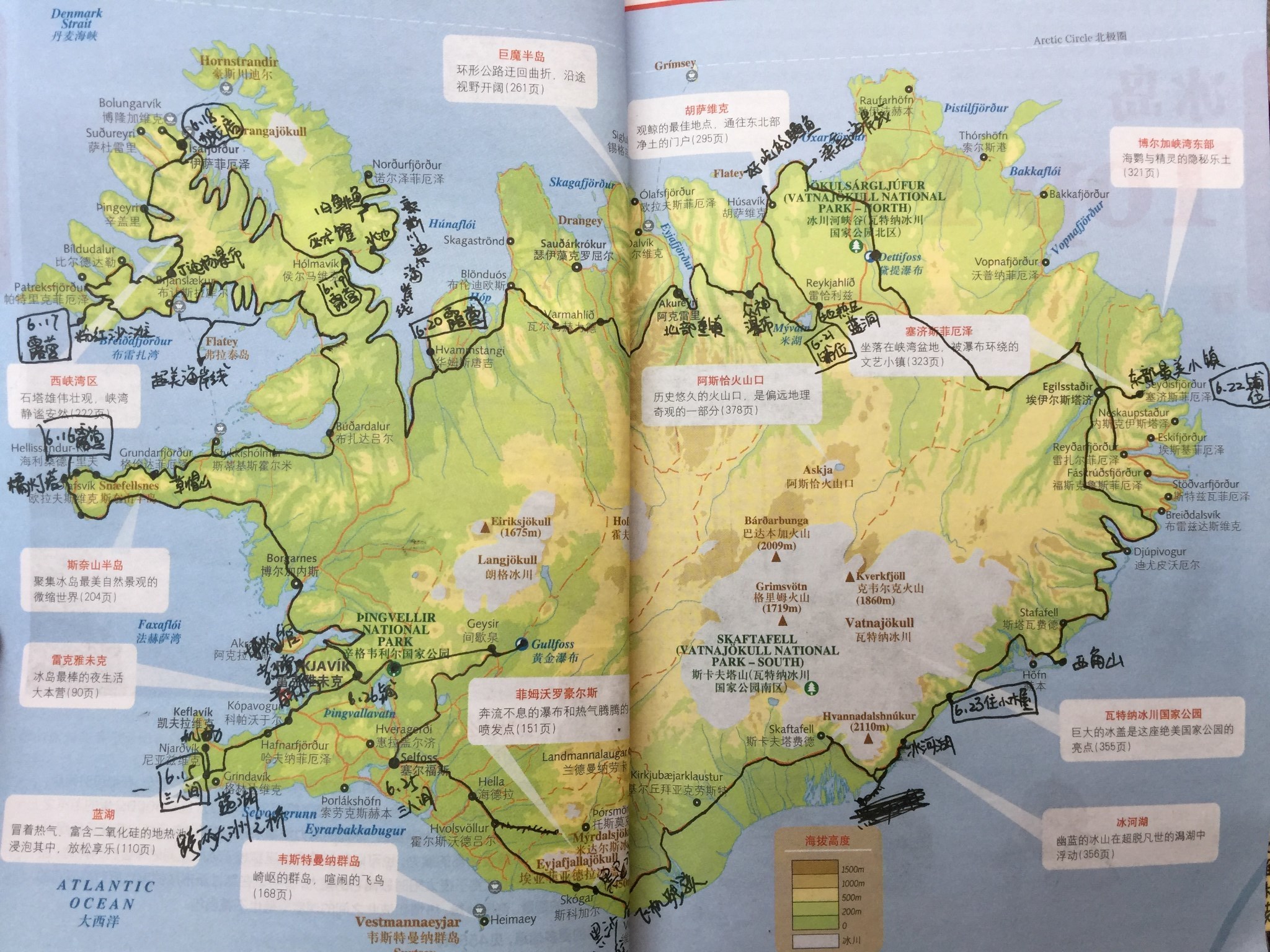 关于这一趟旅途,比较crazy,我并没有做出妥善十足的安排,买了机票,上蚂蜂窝草草看了下哪些地方我想去,圈出来,列个大纲。对着大纲随便订了几个晚上的住宿,仅凭腋下夹的一本指南书,就浩浩荡荡的出发了,其余的一无所知,每天到哪了就翻翻指南书,地图,推荐住哪里,有什么景点,甚至连冰岛露营的情况,我都是未知的,但我们就那样果敢的带上帐篷睡袋坚决要闯一闯了。