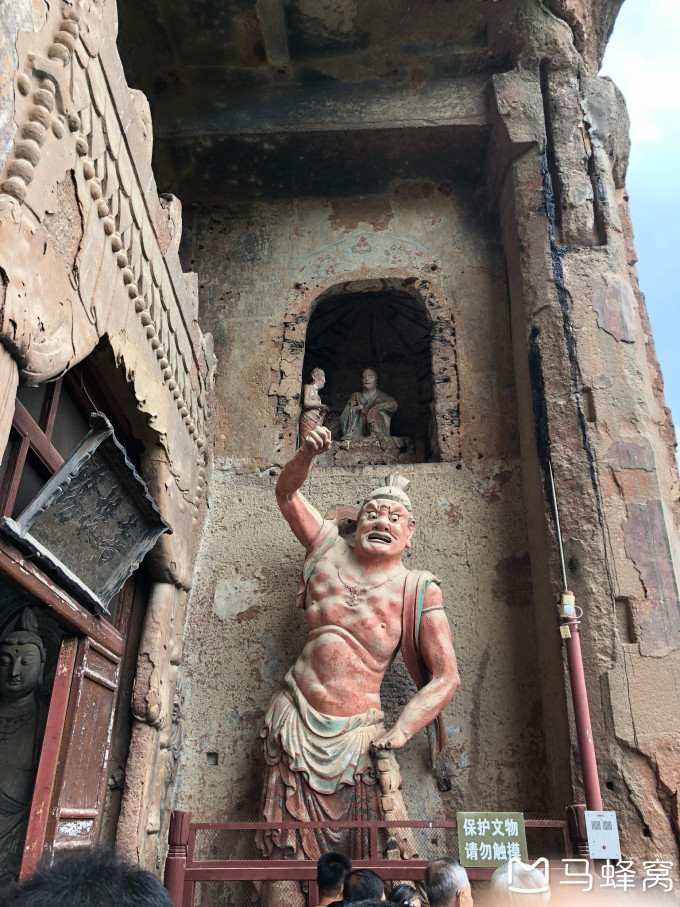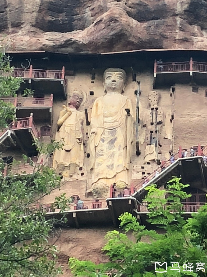 早上开车去麦积山石窟。有一截在修路,十点半到,人多排队,从爬楼梯开始一个小时能逛完。很多窟都封了,封起的大多北魏时期,透过铁丝可以看。