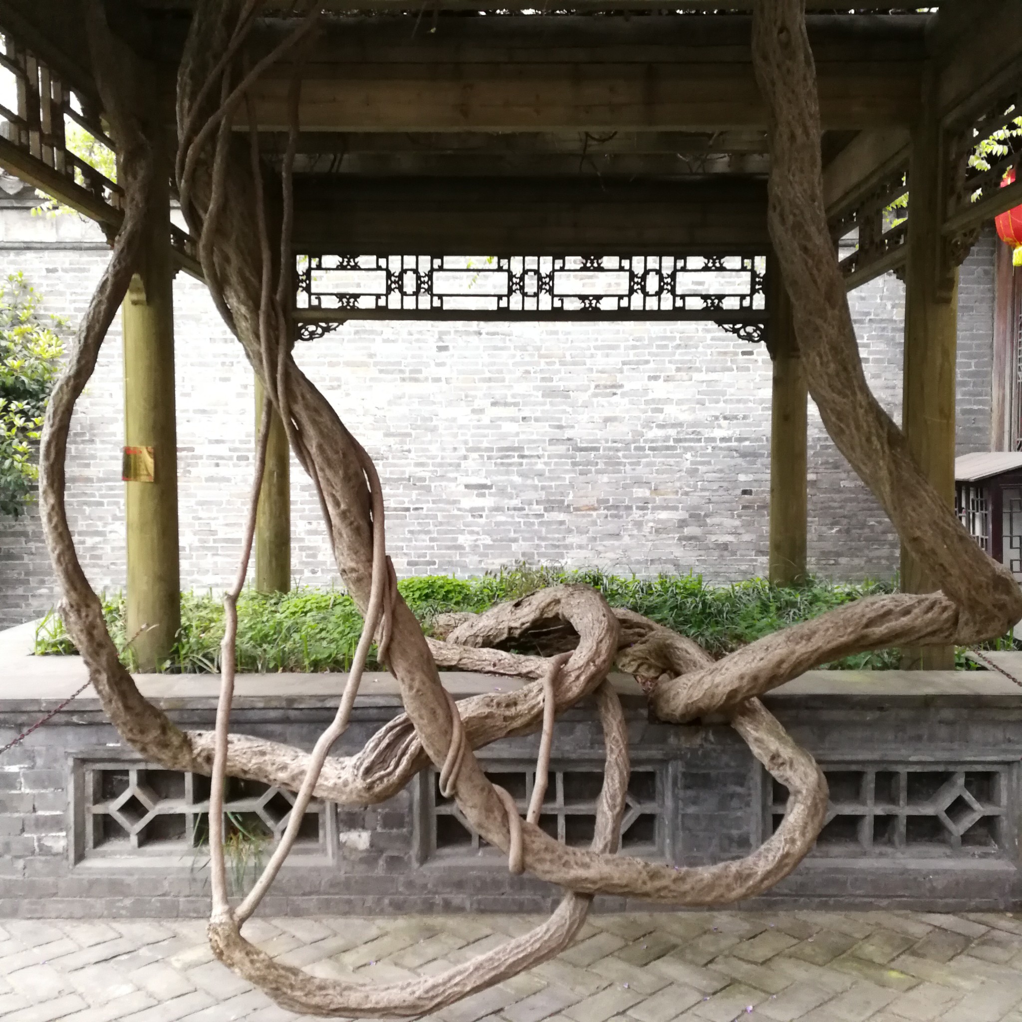 这是当时主人种植的一棵紫藤,是扬州罕见的百余年古紫藤,枝繁叶茂,绿荫如盖。