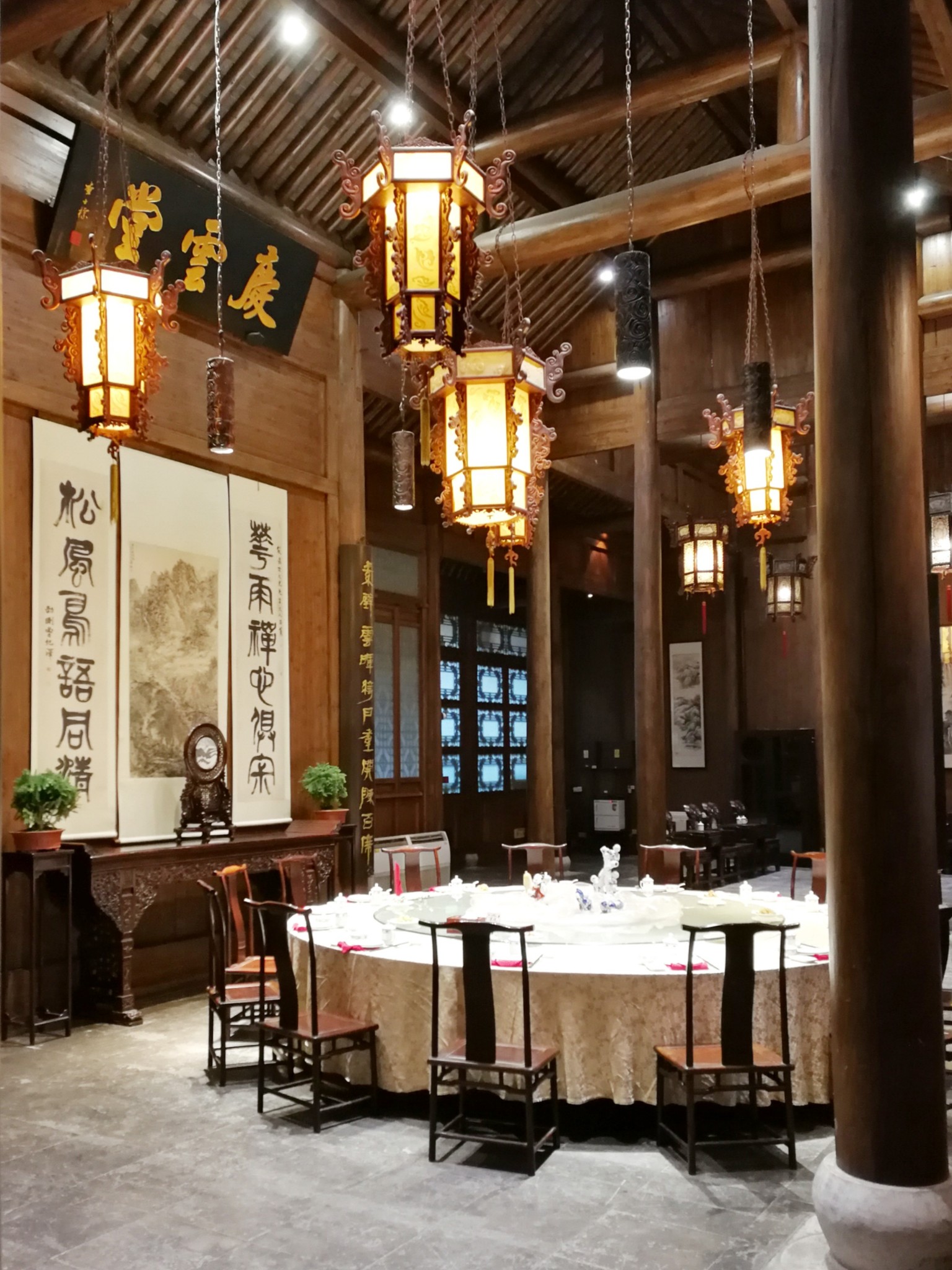 置身宅中,庆云堂、淮海厅、兰馨厅,涵碧厅、怡情楼,厅厅相连,气势非凡。壁上的诗画尽显屋主的修为境界。