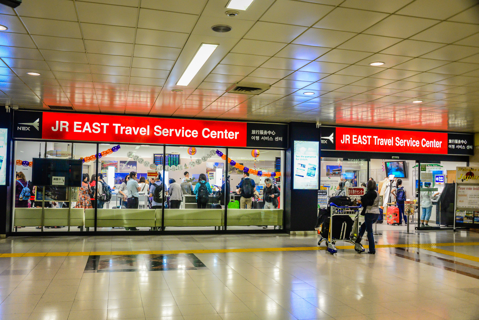 入境提取行李后出来是在机场到达大厅1楼(国内来的班机一般是停靠T1航站楼),正对面的柜台可以购买东京地铁通票(TIPS4会详细说),购买后乘扶梯到负一楼的 JR旅客服务中心(见下图,到达大厅有问询处可以指路),填表登记,选取JR PASS生效日期,并可以预约有效期内的N`EX(成田机场--市区)车票,新干线车票和特快车票,工作人员非常热心,即使你的问题再多,也会不厌其烦地为你解决。