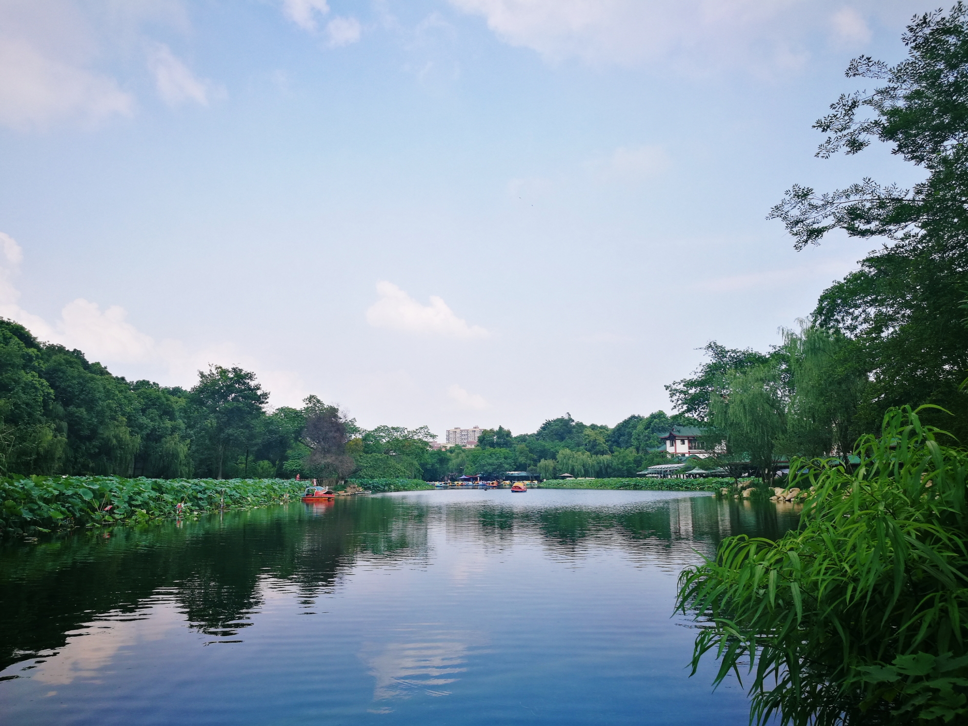 沿着曲径走去,寻着掩映在柳林翠竹之后的亭台楼阁,忽然眼前开阔,一片碧波横入眼帘。