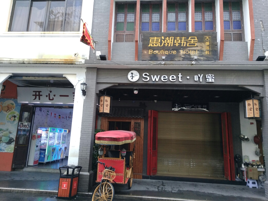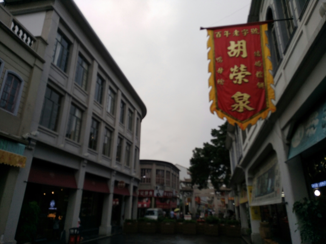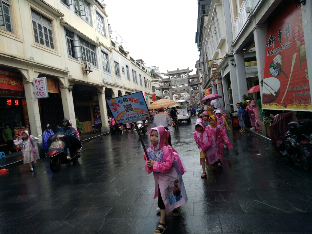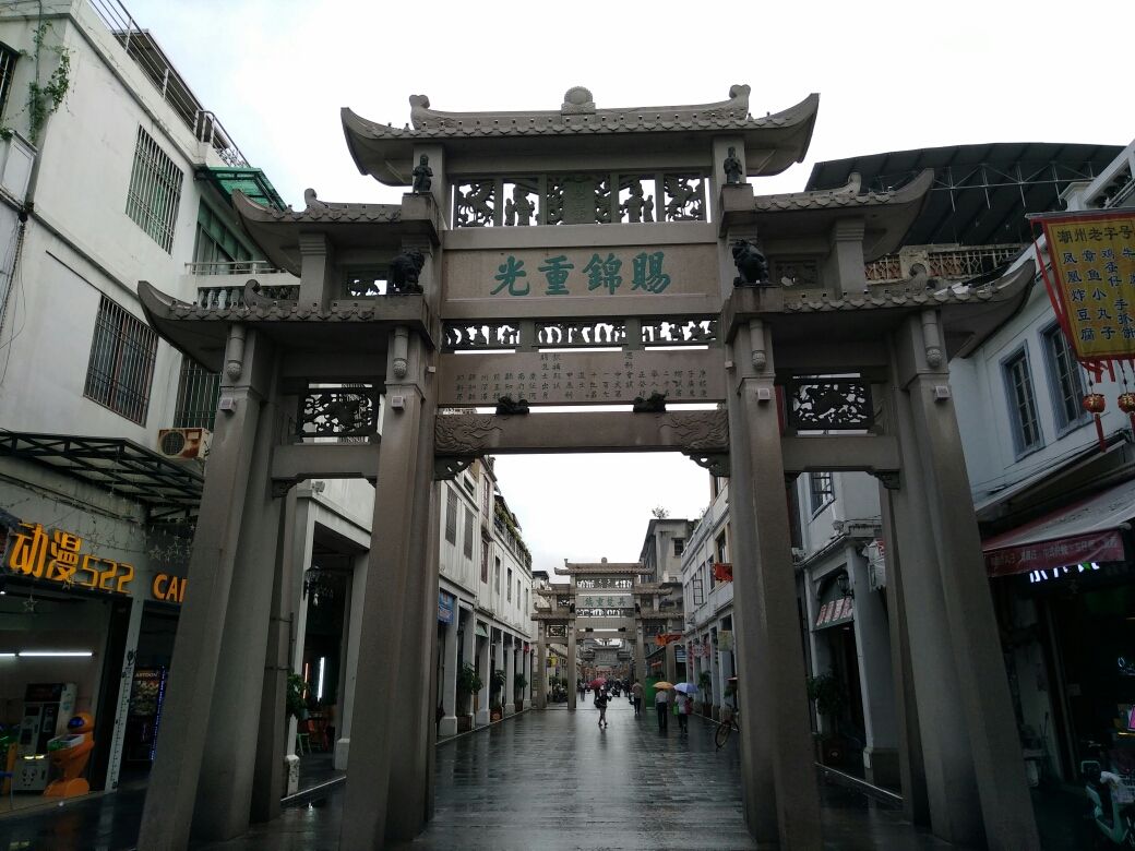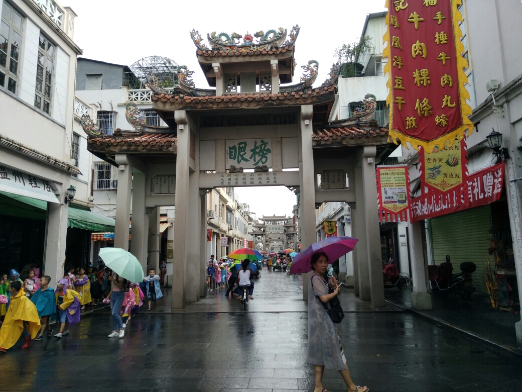 到酒店稍微休整后,我们就前往牌坊古街。虽然天降阵雨,也阻挡不住我们急切游玩的心情,另外,腹有饿感,也有品赏美食之意。从酒店到牌坊街的东入口不到200米,几分钟就走到牌坊街。这也是我们第一天选择入住金龙大酒店的原因。
