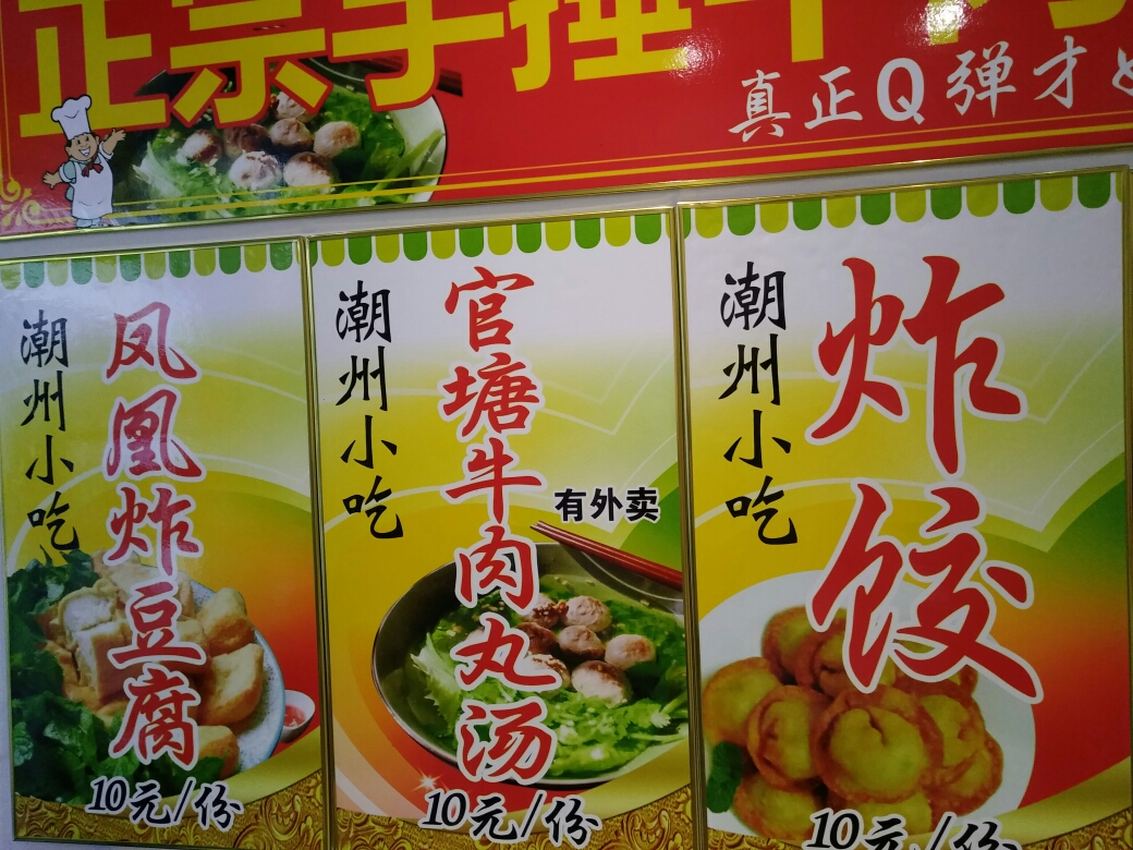 边走边看,遇一小食店,见有著名的潮州官塘牛肉丸汤,便顿感饥肠。点了一碗潮州牛肉汤丸10元,一个凤凰炸豆腐拼炸饺10元,一碗杏仁茶5元。官塘牛肉丸真个是名不虚传,咬一口超弹响脆,香汁四溢。炸豆腐就着绿绿的薄荷叶,吃起来别有特色。