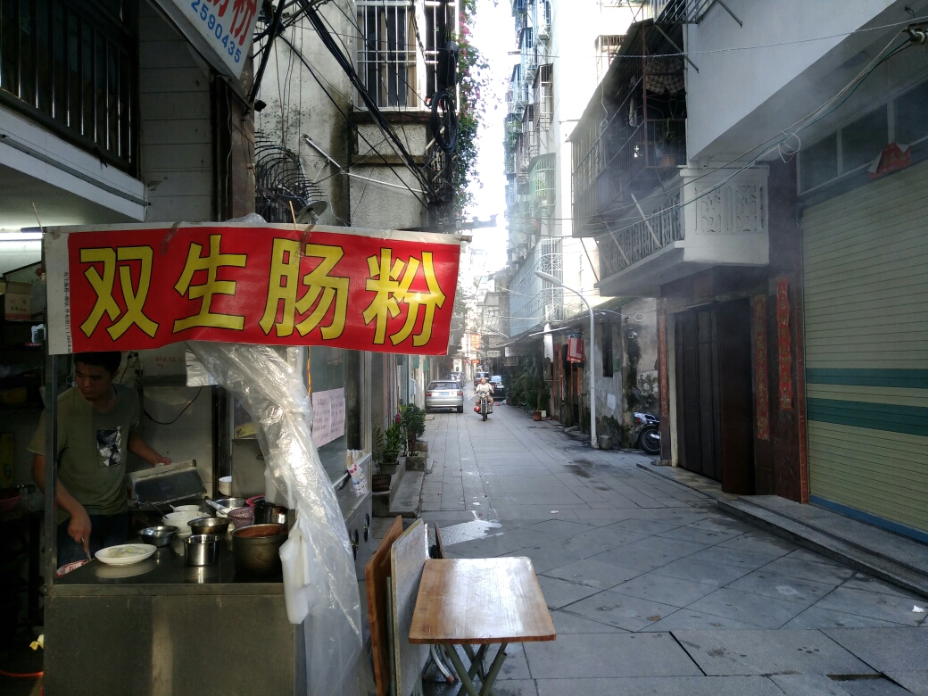 9月13日一早,打开窗帘,一缕阳光散洒入屋,湛蓝的天空漂浮着薄薄的霞云,晨练和赶早的人们已经开始忙碌。好天气,我们便轻装出发,先到一个网红肠粉店去吃早餐,就在牌坊街入口工商银行对面的小巷子里。双生肠粉,里裹笋丝,外浇芝麻花生酱,7元/份,吃起来笋脆酱香,名不虚传!吃完早餐,就到古城墙上徒步去。