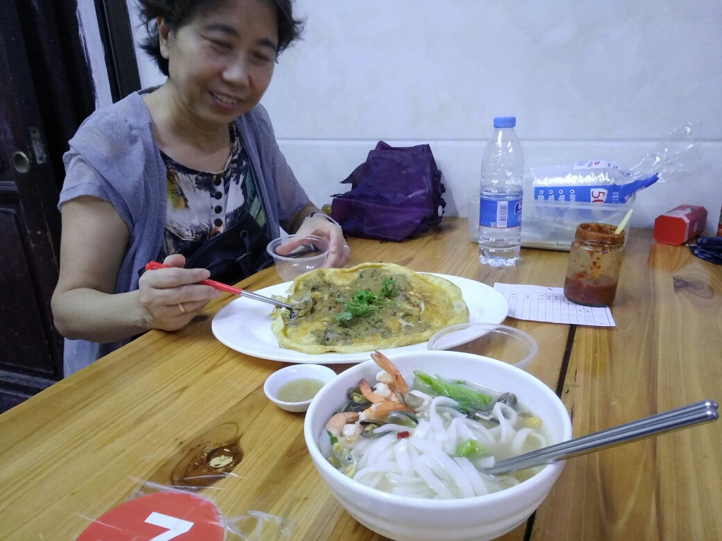 从滨江长廊返回牌坊街已是晚上6点多,在牌坊街转角不远处一家小店吃了潮州美食的另一类代表 蠔烙和海鲜粿条。蠔烙40元一盘,挺大的,蠔与红薯粉混伴油烙,外围鸡蛋摊裹,酥而不腻,比深圳的入味好吃;海鲜粿条20元一碗。潮汕地区把广府和客家人的河粉称着粿条,口感和外观没有区别,叫法不同罢了。