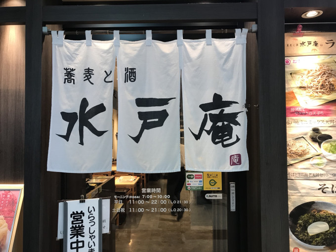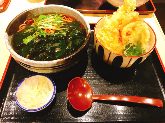 机场大巴很快到达水户站北口。水户市是茨城县的省会城市,相当于江苏省的南京巿吧。水户站很繁华,有big camera,需要购物的童鞋可以在这里买买买。这里同时是茨城的交通枢纽,有发往各地的JR线和巴士线。而我们首先要解决吃饭问题,早上八点多的飞机,夜里四点不到就出门了,此时真是饿到晕倒。在水户站里找了一家荞麦面馆,豪气的点了他家最贵的套餐只要1180日元,有一大份荞麦面和一份天妇罗盖饭,特别好吃!