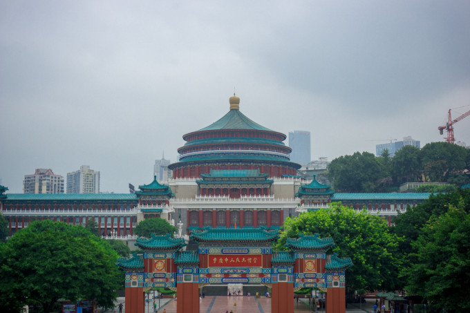 出了门就是重庆市人民大礼堂。