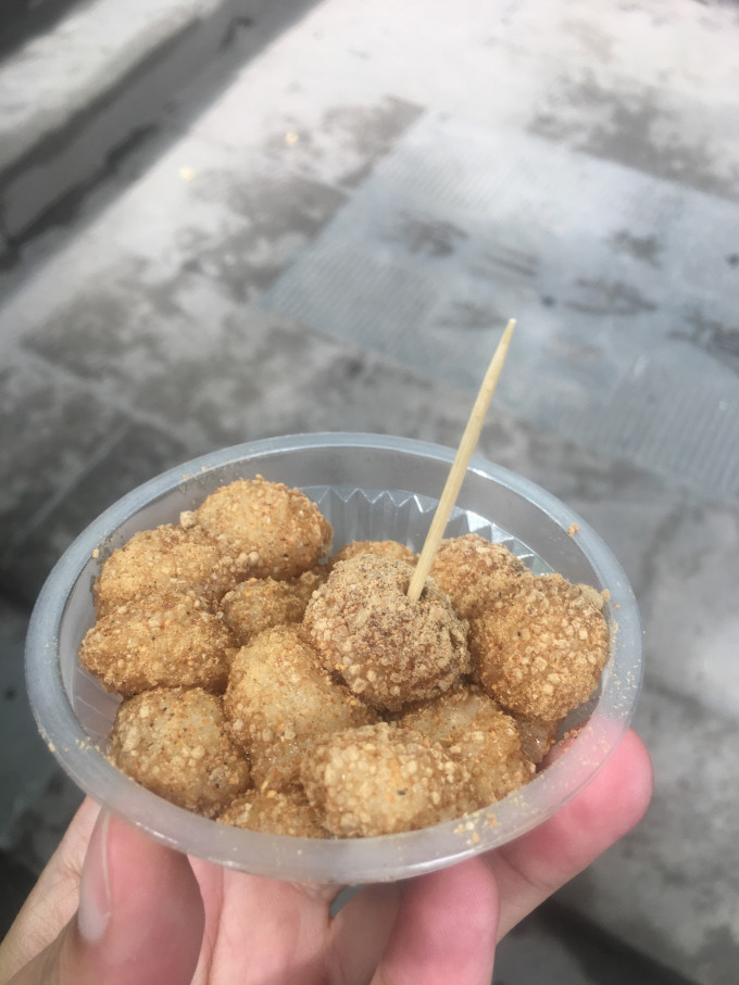 门口有个大爷在那卖糍粑,3块钱一小碗,还不错。