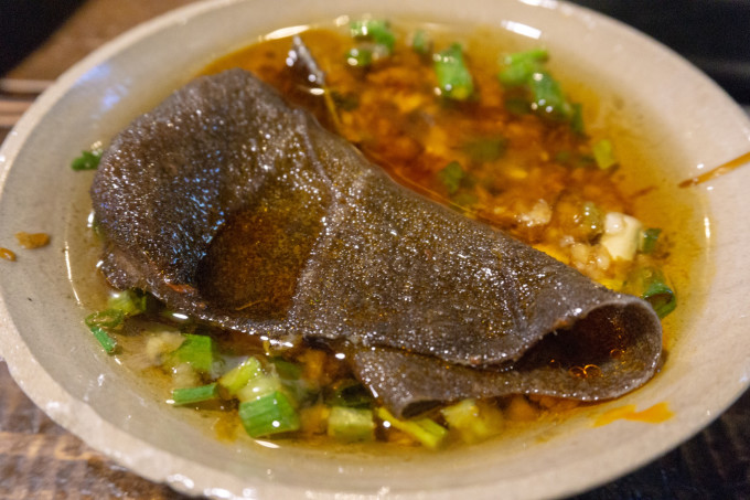 香菜牛肉丸,这道的香菜有点土味,不是很合我胃口。在重庆吃火锅我觉得海鲜、肉什么的就别点了,尽量点一些当地特色的食材比较有趣,毕竟在外面吃不到