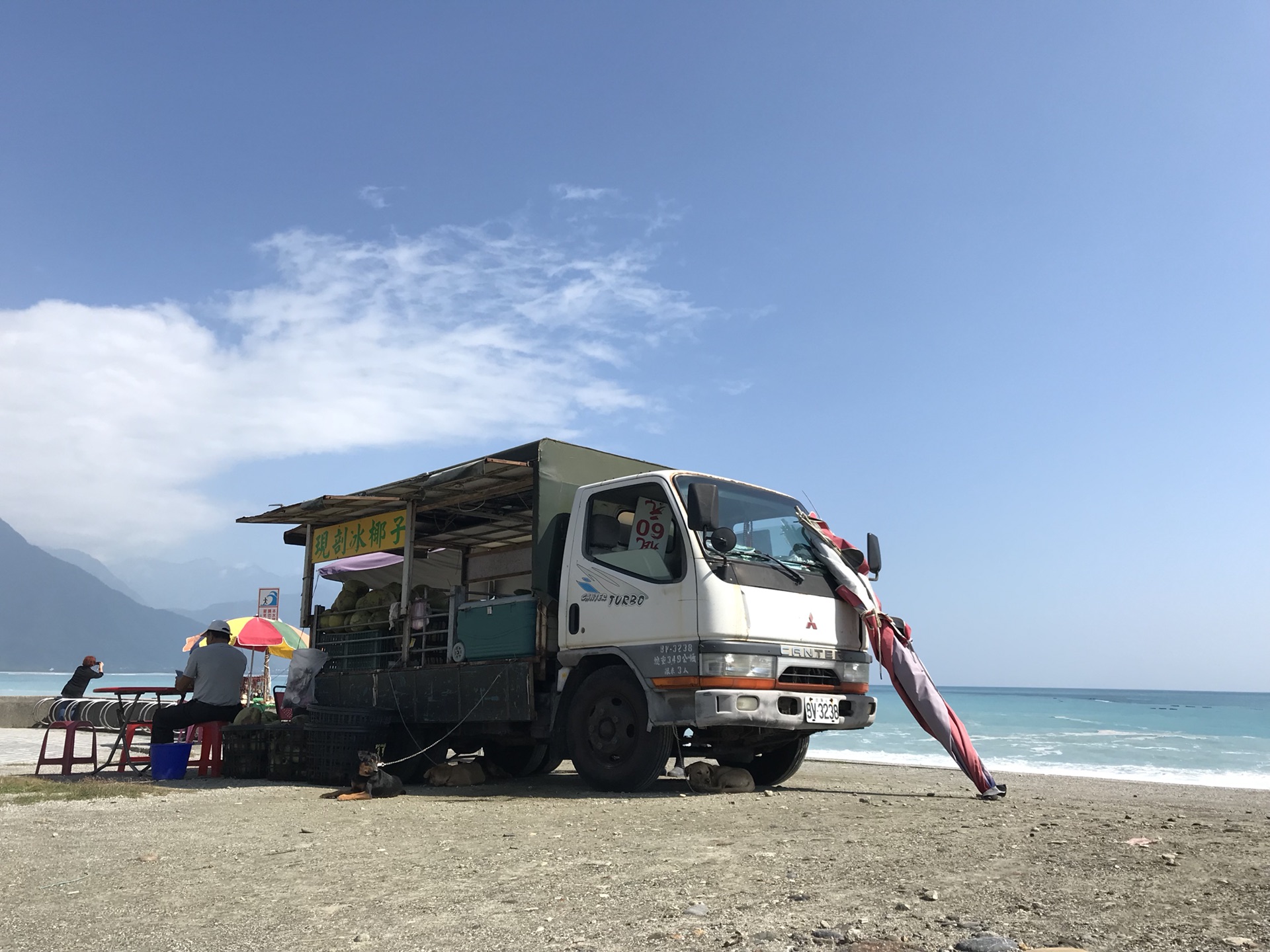 原本的七星潭村因为机场建设,迁移去了海边。花莲的海浪凶猛,轻易不要去招惹。因为是大晴天,海面的蓝色很漂亮,波光粼粼。太平洋的海向来很美,只是谈不上惊艳了。目前最惊艳我的,还是在布鲁尼岛的出海巡航。