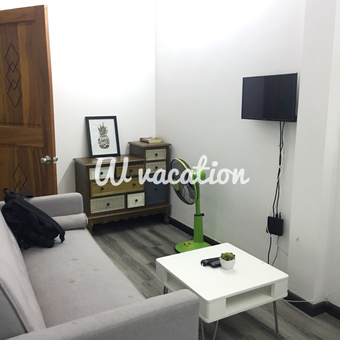 阳台还蛮大,还有很密的防盗网,放心很多,每个门都会有锁,房间锁、阳台锁、客厅锁、大门锁。我们的楼正对着一个小的天主教堂,觉得比较安全。这里离很多吃的的很近,离范五老街就5min路程~住宿最后一天11:00前自助退房,很方便^