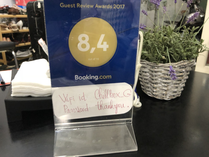酒店的登记处在一个小巷子里,小巷子里的环境是真的很差,蟑螂很多,四五步就有一只,心里一颤怂得不行,但来到登记处里,屋内和屋外像有个隔层,里面还蛮干净的。在这里住的大部分都是歪国人,可能因为booking竟然还蛮高分呢(那时候觉得“竟然”。