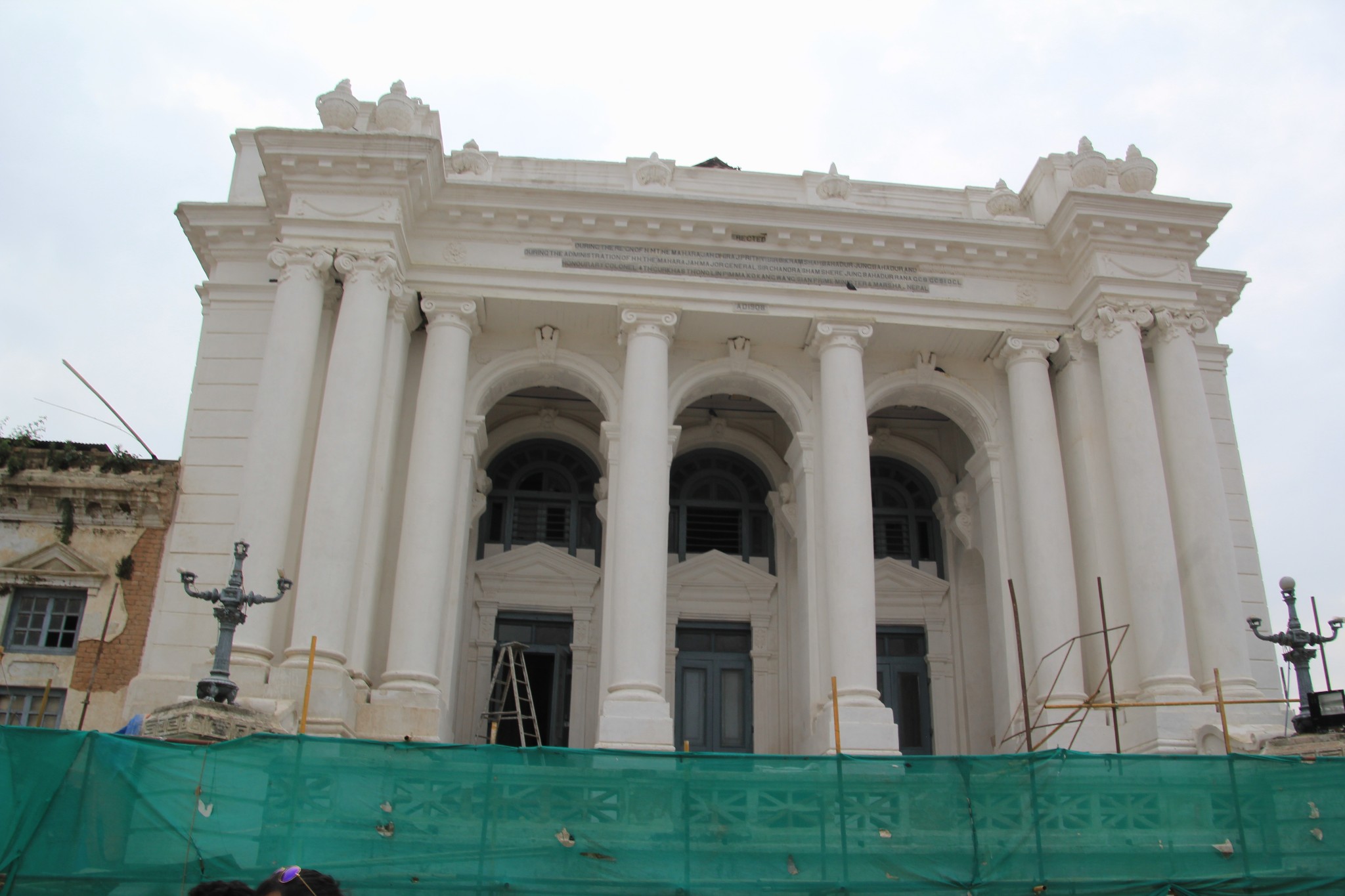 Basantapur Durbar(巴斯塔普皇宫),它修建于1908年,是一座新古典主义风格的西式建筑,与杜巴广场上众多尼泊尔传统的“纽瓦风格”宫殿、神庙形成鲜明反差。该建筑建于上世纪初期亲英的拉纳家族执政期间修建的,建成后被用做王宫的会客厅。