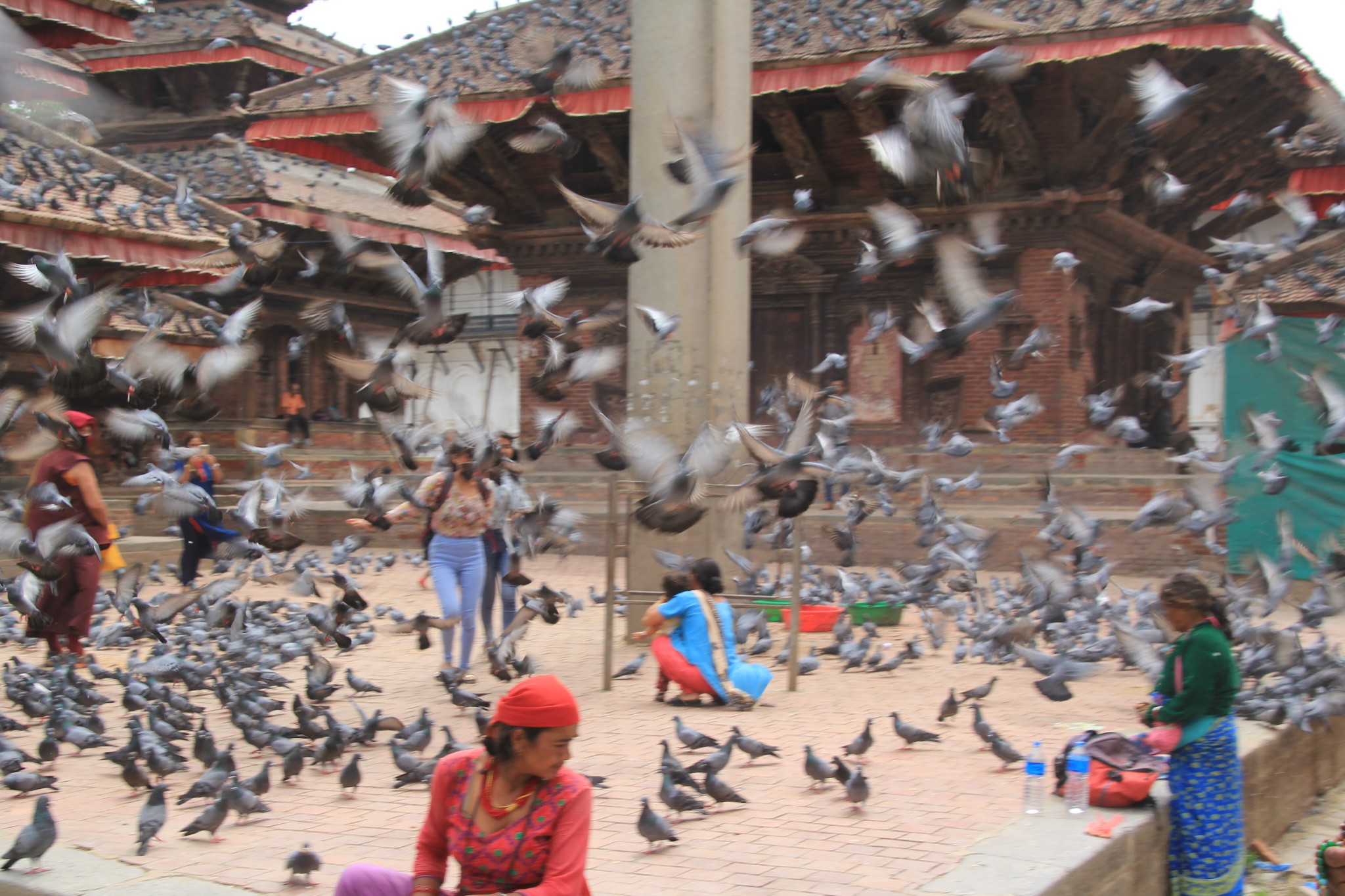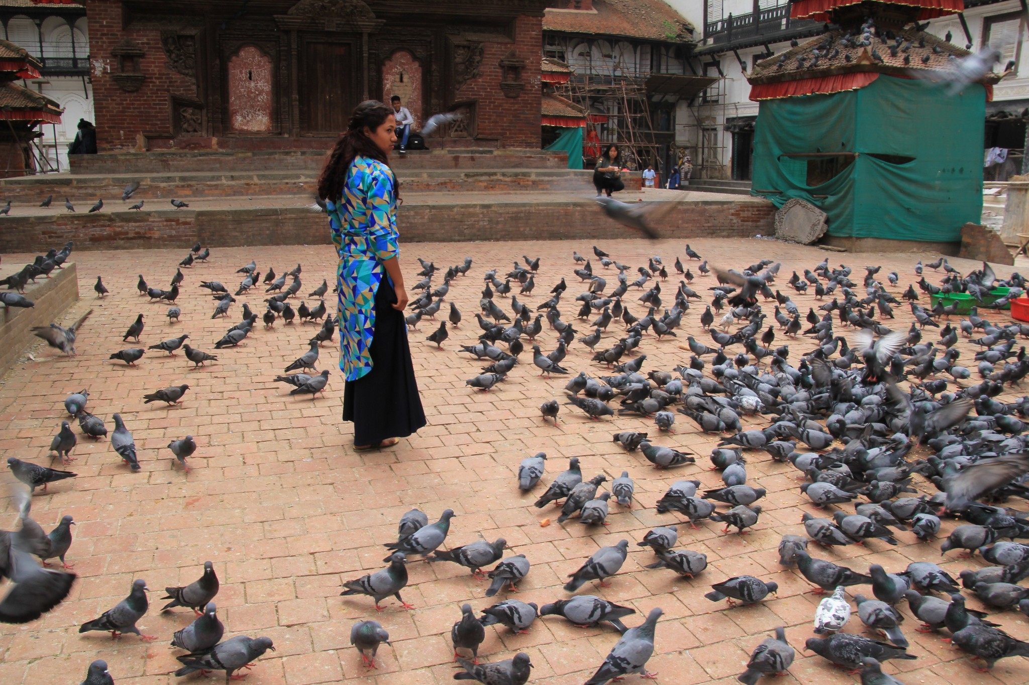 看鸽子的尼泊尔少女