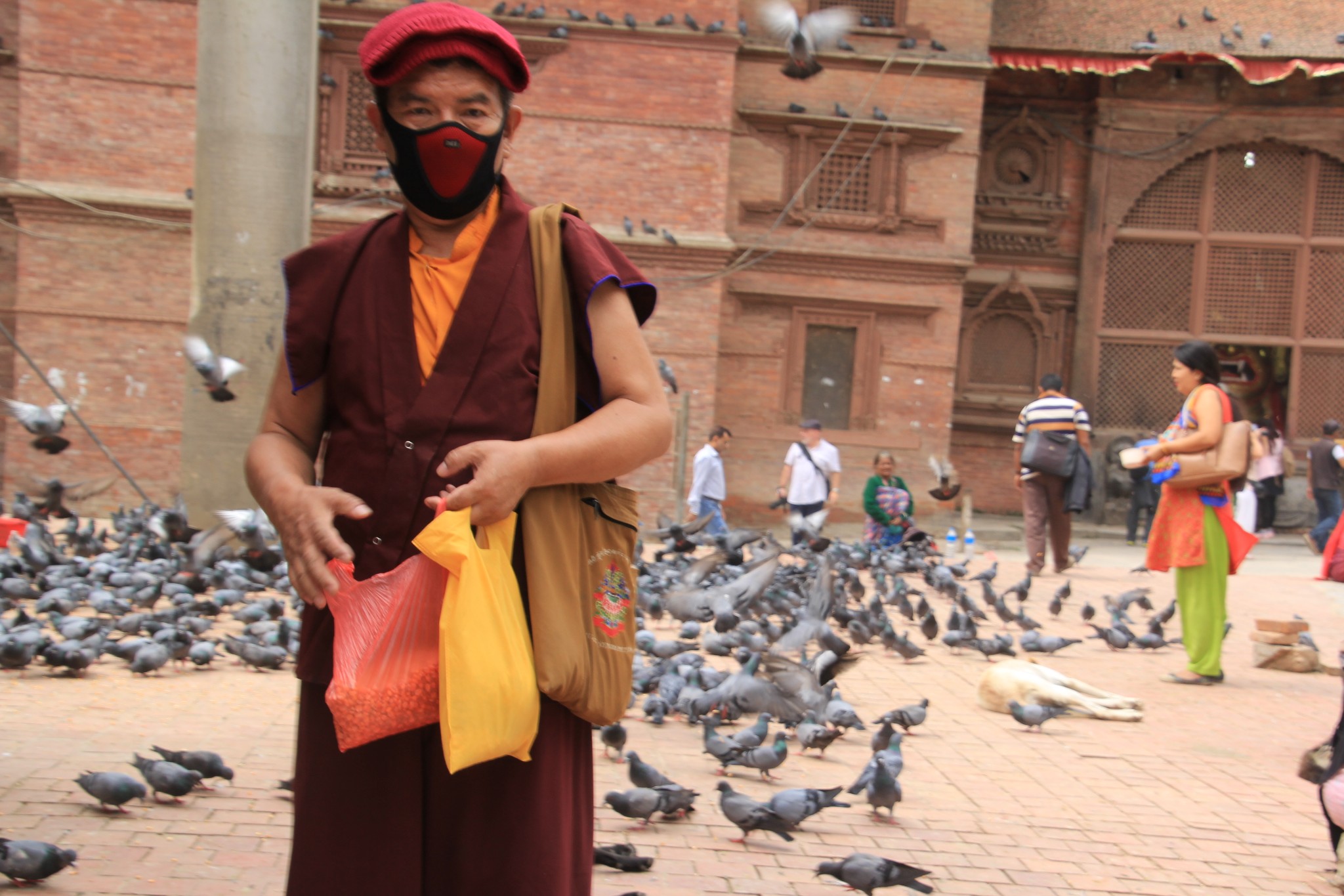 喂鸽子的僧人