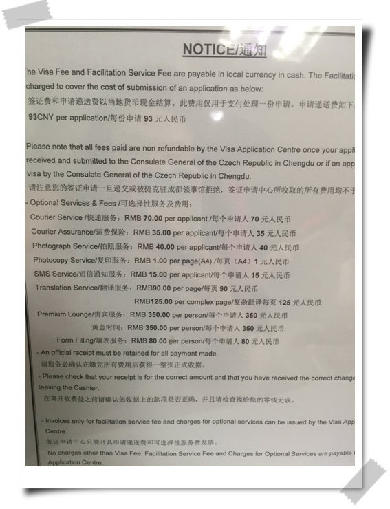 注意:除领馆收取的费用外,签证中心会加收94元签证服务费。我当时的签证费+服务费按汇率是556。