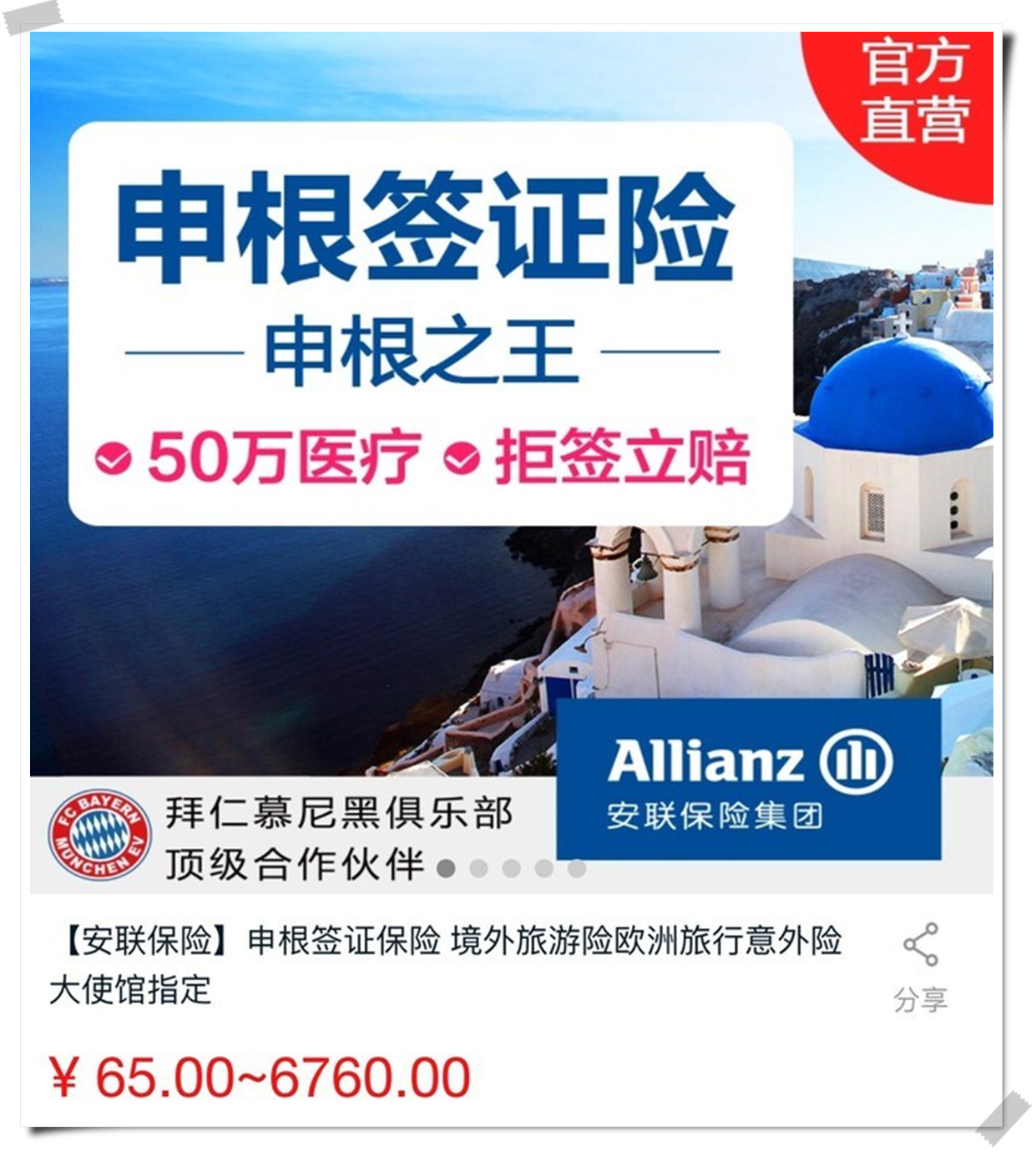 ④申根签证必须买申根保险,淘宝—安联财产保险官方旗舰店,申根签证险申根之王,根据年龄的不同,价格不同