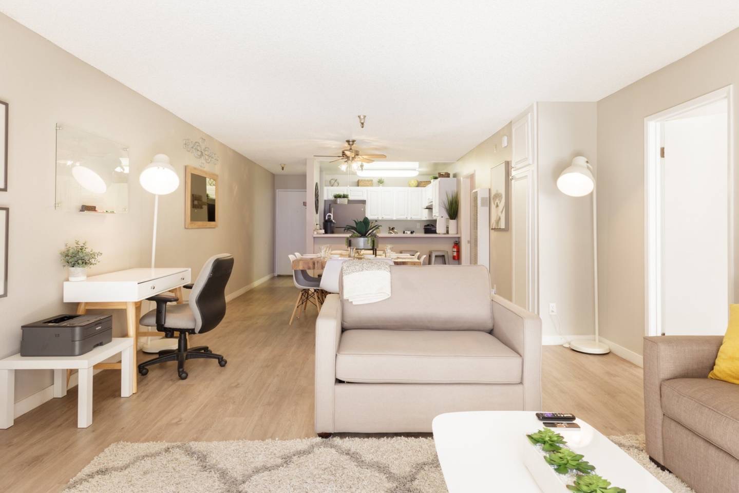 客厅、卧室都非常宽敞(后来的感受就是美国的什么东西都做得比较大)、干净,装修简洁。