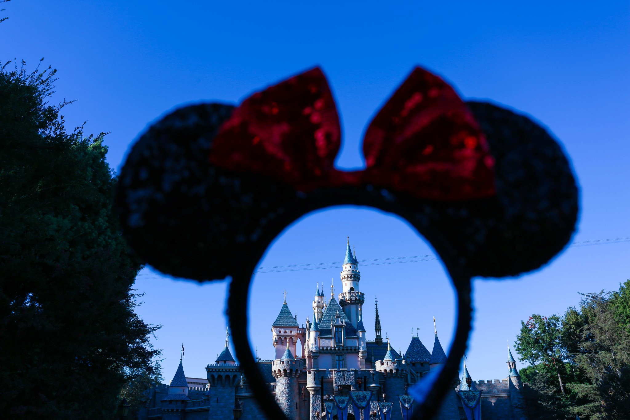 这是冒险乐园,我俩一人买了个米老鼠头饰,戴着它美美地拍全家福。