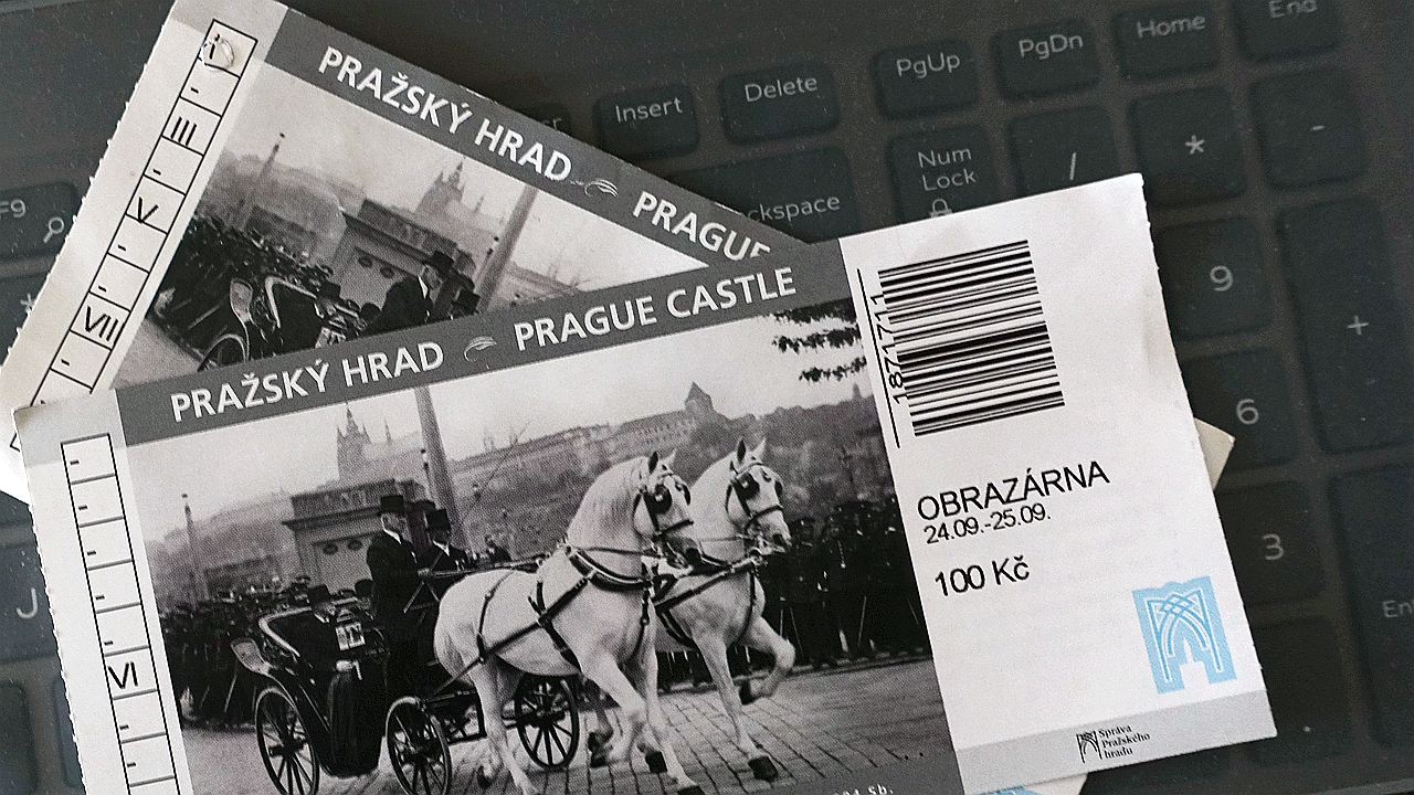 08:00从酒店出发,考虑到全团都参加自费项目-乘船游览伏尔塔瓦河,原定行程就此彻底改变。即取消了外观市民会馆(不少于15分钟)、火药塔(不少于10分钟)、瓦茨拉夫广场(不少于15分钟)(Václavské náměstí ~ 今年是布拉格之春50年,当地有很多相关主题的展览,对于国人而言,那段太敏感的历史还是回避较好)。修改行程后的第一站改为布拉格城堡,布拉格城堡的票第二天仍可使用,票面左侧的罗马数字是可进入的展室编码,城堡的团体票价是10.87欧元。