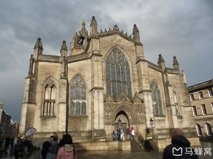 这张图是黄家英里,从爱丁堡城堡出门的那条路直着往下走,不到第一个红绿灯的地方。右边那个有着尖头的是圣吉尔斯大教堂。
