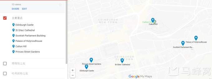 爱丁堡必打卡也就是上面地图里蓝色的那些点。虽然被我称为必打卡,但说实话,议会我倒现在还没有去过。