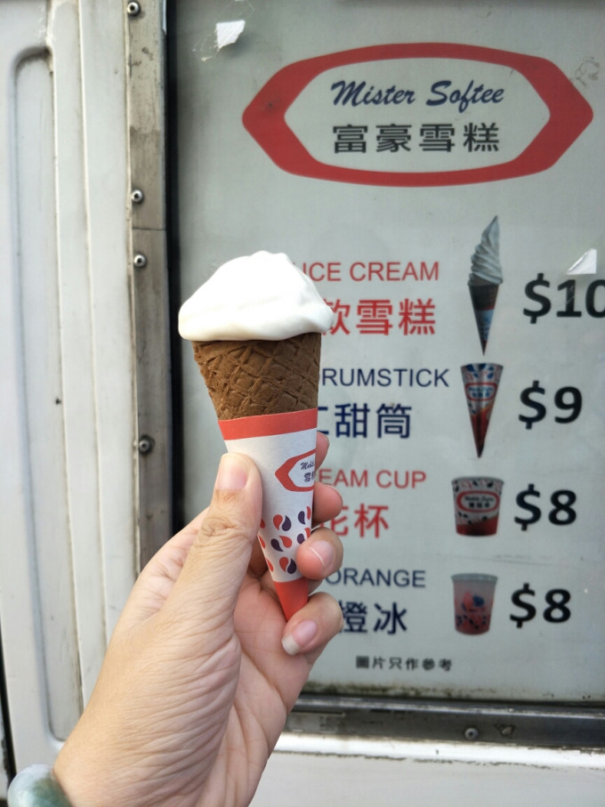遇到了富豪雪糕车,当然不能错过。队伍不算长,但是排了很久