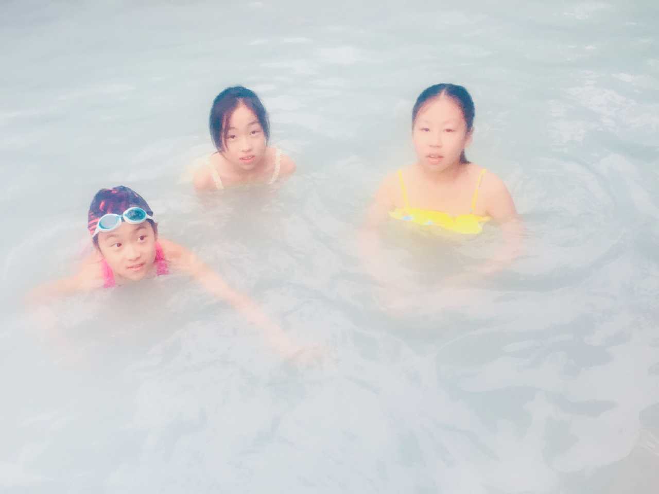 这里最有特色的就是这个标准游泳温泉池了,三个会游泳的孩子们在小泡池里待不住,在大池子里才有如鱼得水的感觉。