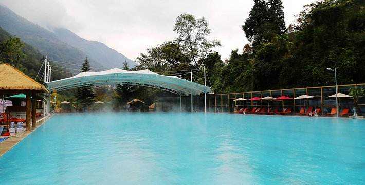 贡嘎神汤坐落在国家级地质公园、国家 AAAA级风景名胜区海螺沟冰川森林公园景区内,位于景区第一道山门与一号营地之间,海拔1580 米,是国内高山温泉中海拔最低、品质最佳的冰川温泉。这里有大大小小温泉池 25个,属纯天然奶汤泉,可饮、可浴、可疗,是罕见的冰融型碳酸钠钙中性优质医疗热矿泉,储量占海螺沟第一位。