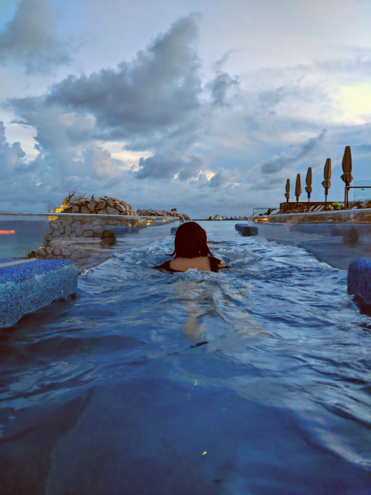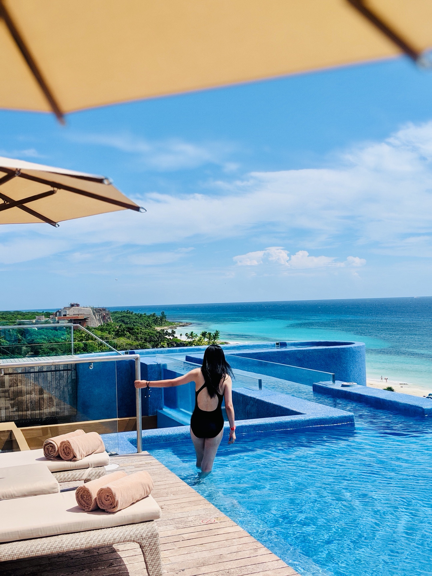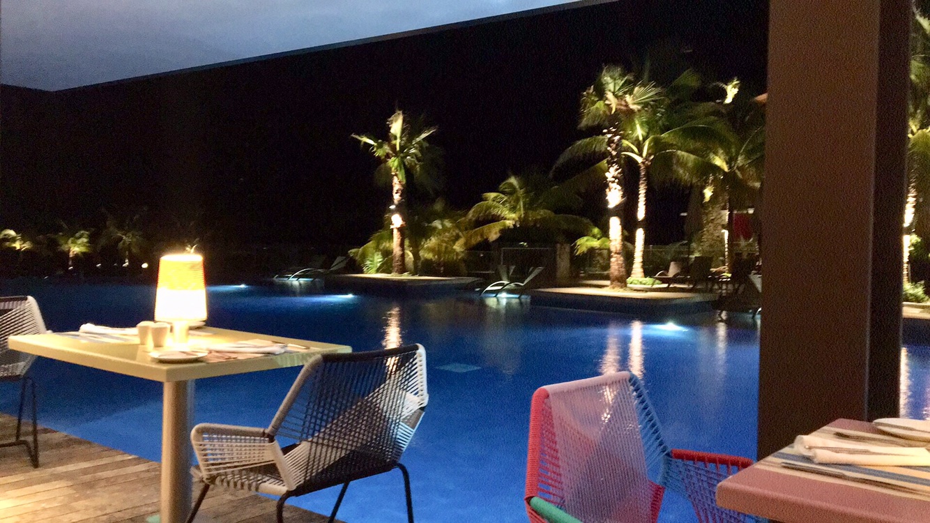 酒店分为四个楼,以风水火土命名。我们订的是三间River区域的房间,但是当时没房了,就自动升了两间房,到了最高级的fuego楼,楼内自带无边泳池,bar和餐厅。泳池89点关,泳池的bar7点关,大家可以注意一下时间安排一下。fuego餐厅晚餐需要预定,早餐午餐随意去。